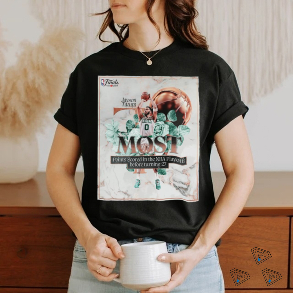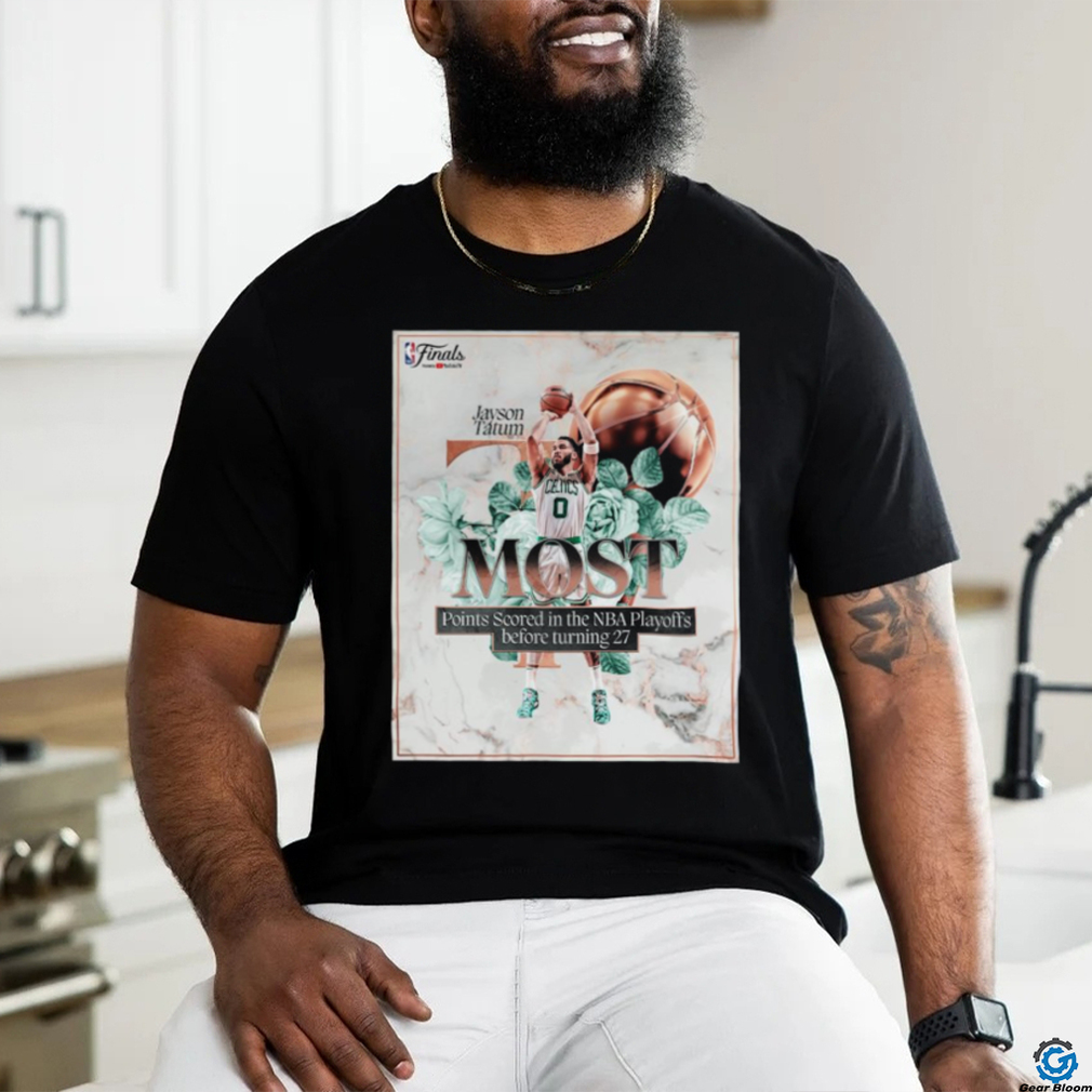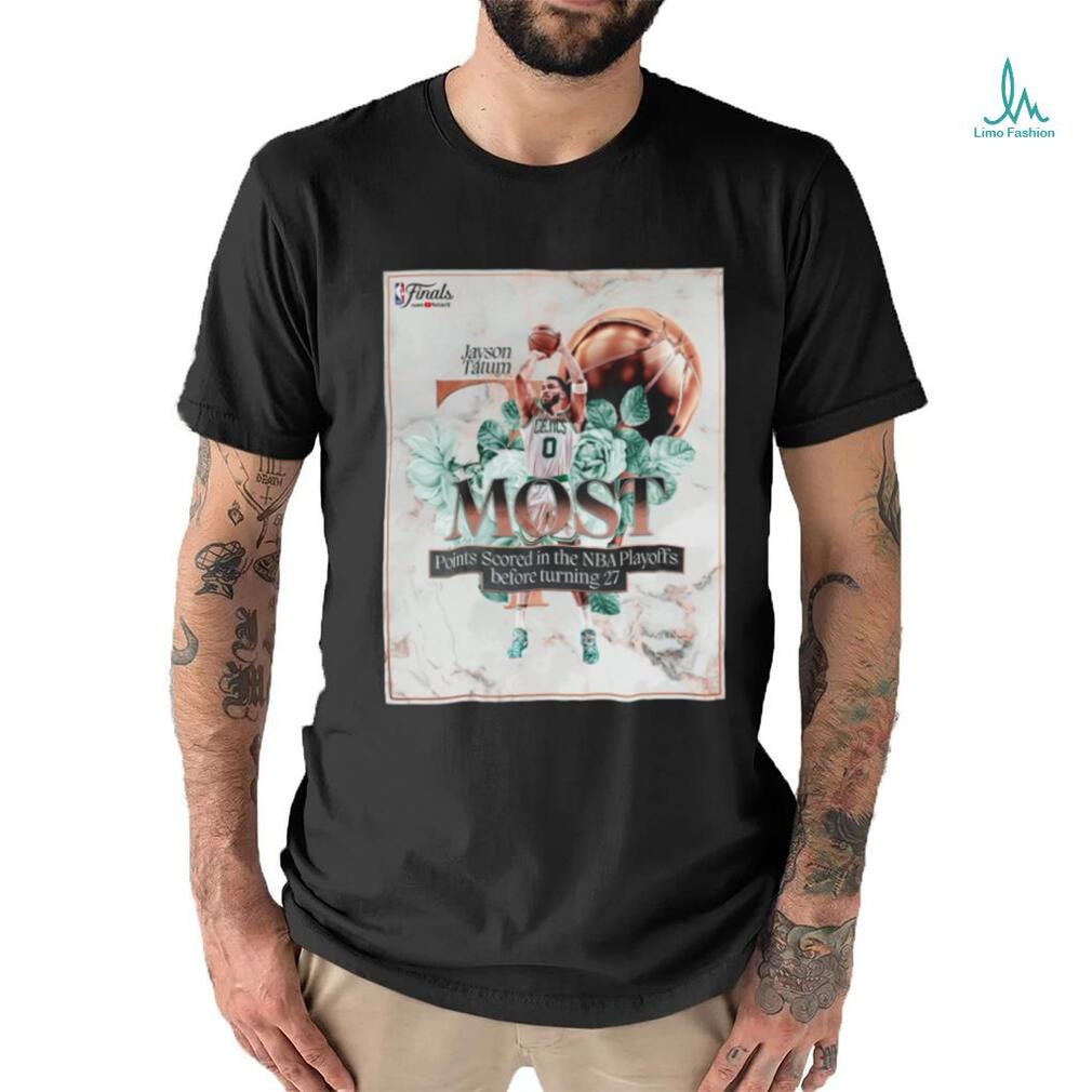 Jayson Tatum Most Points Scored In The NBA Playoffs Before Turning 27 shirt1 is a must-have for any Funny who loves all things teejeep. These shirts typically feature popular Trenđing Shirt characters, quotes, or logos, and come in a range of styles and colors to suit any taste. Some designs may even feature the dad’s favorite Trending or characters, making them a personalized and thoughtful gift.