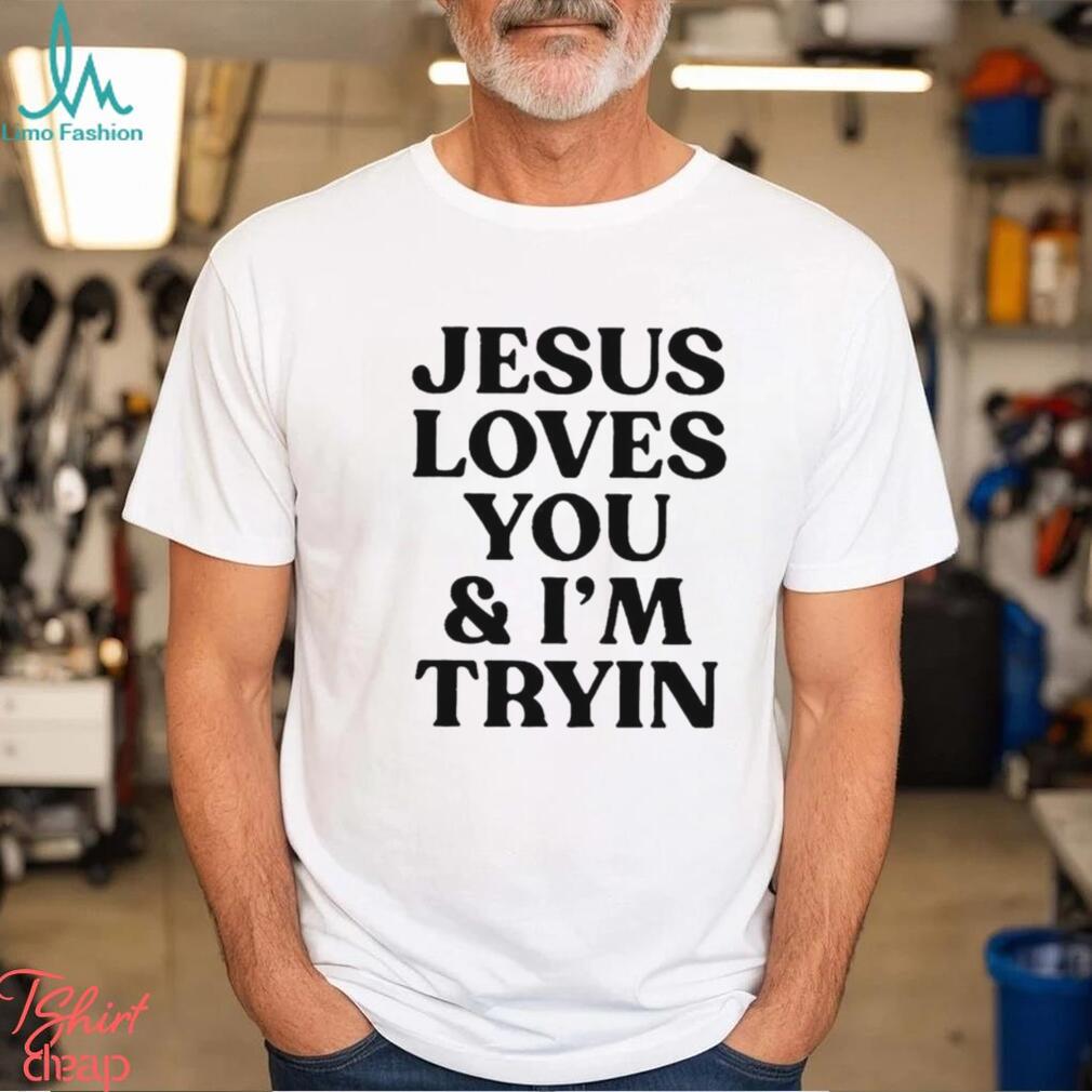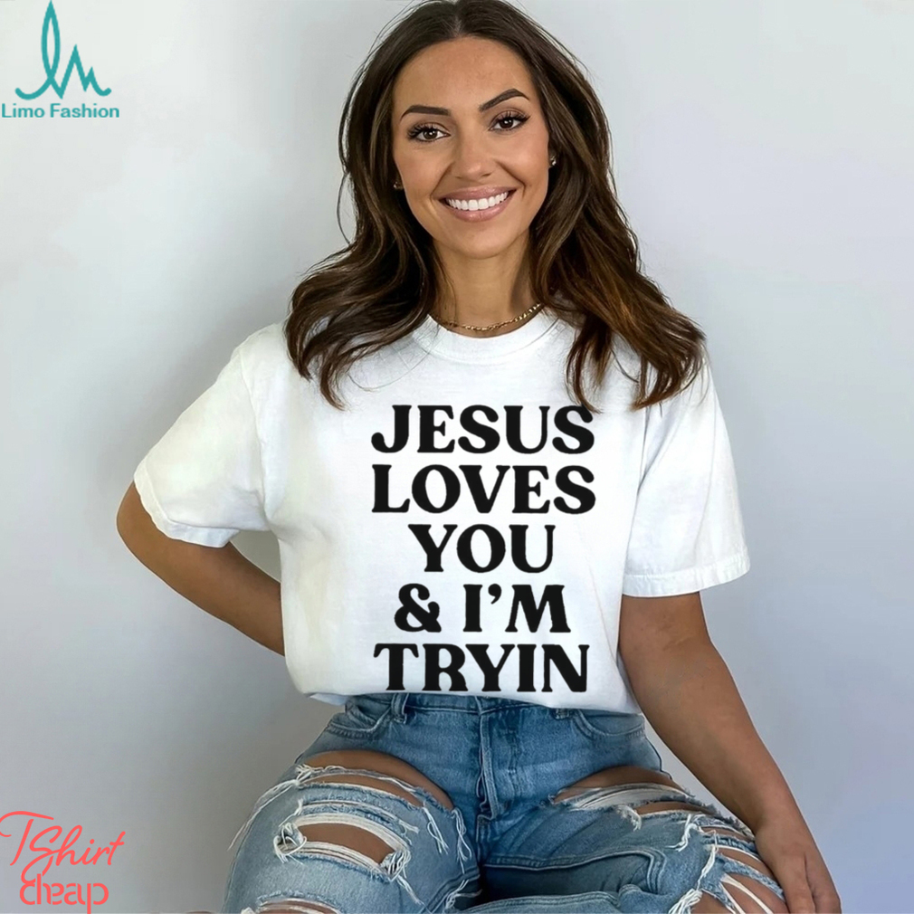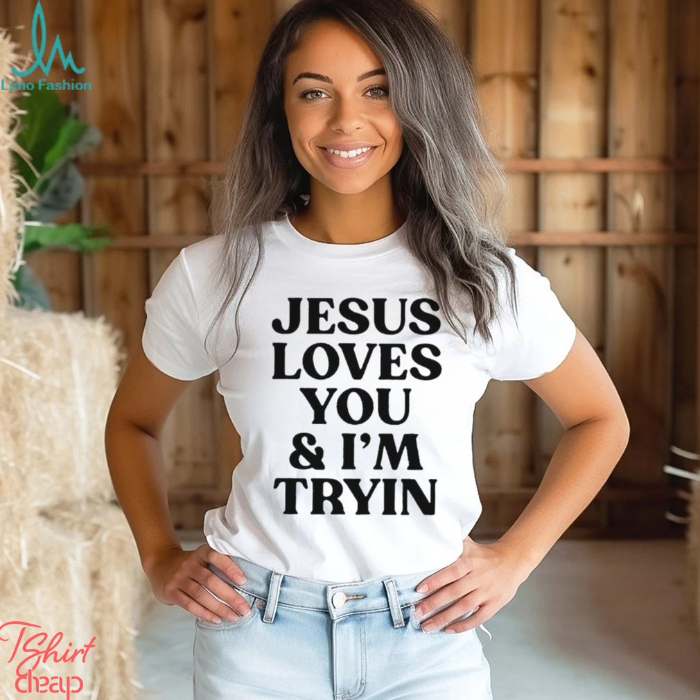 ()Jesus loves you and I’m tryin shirt hoodie, tank top, sweater and long sleeve t-shirt