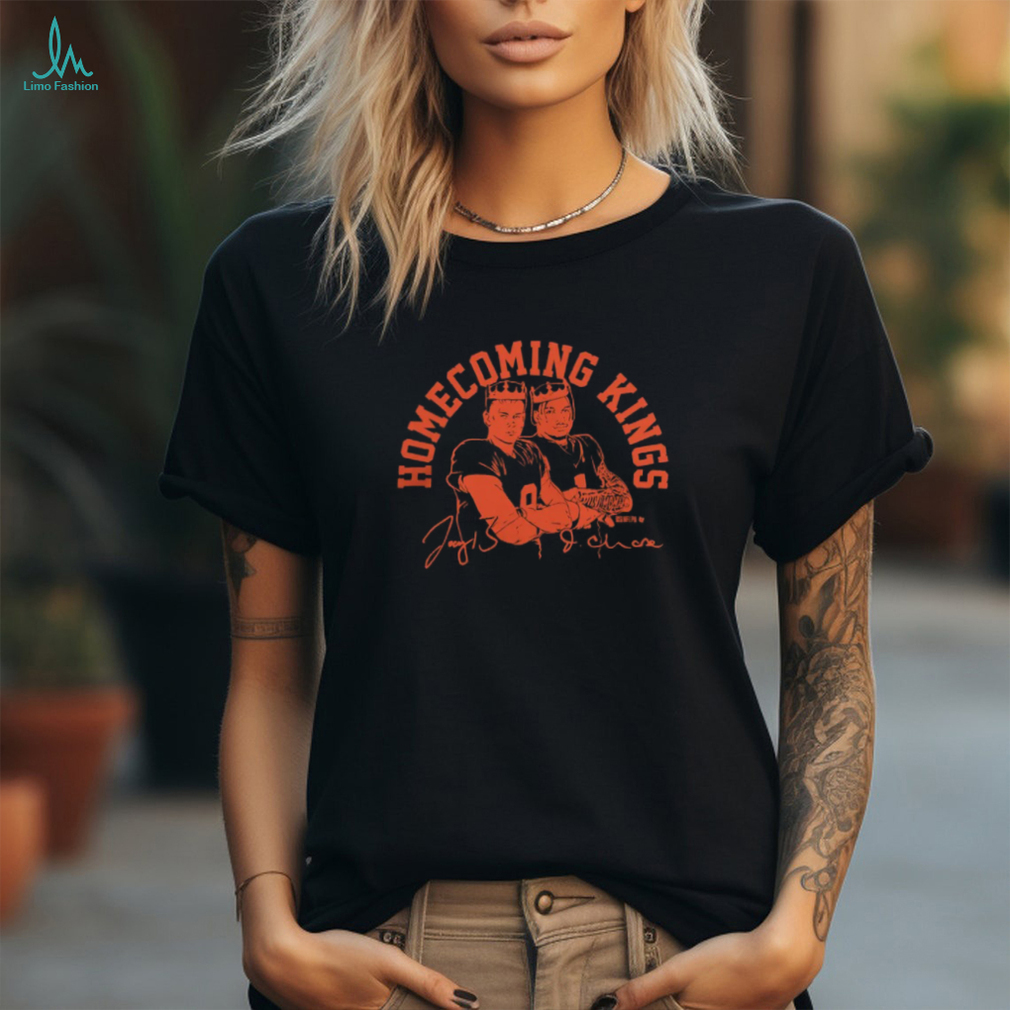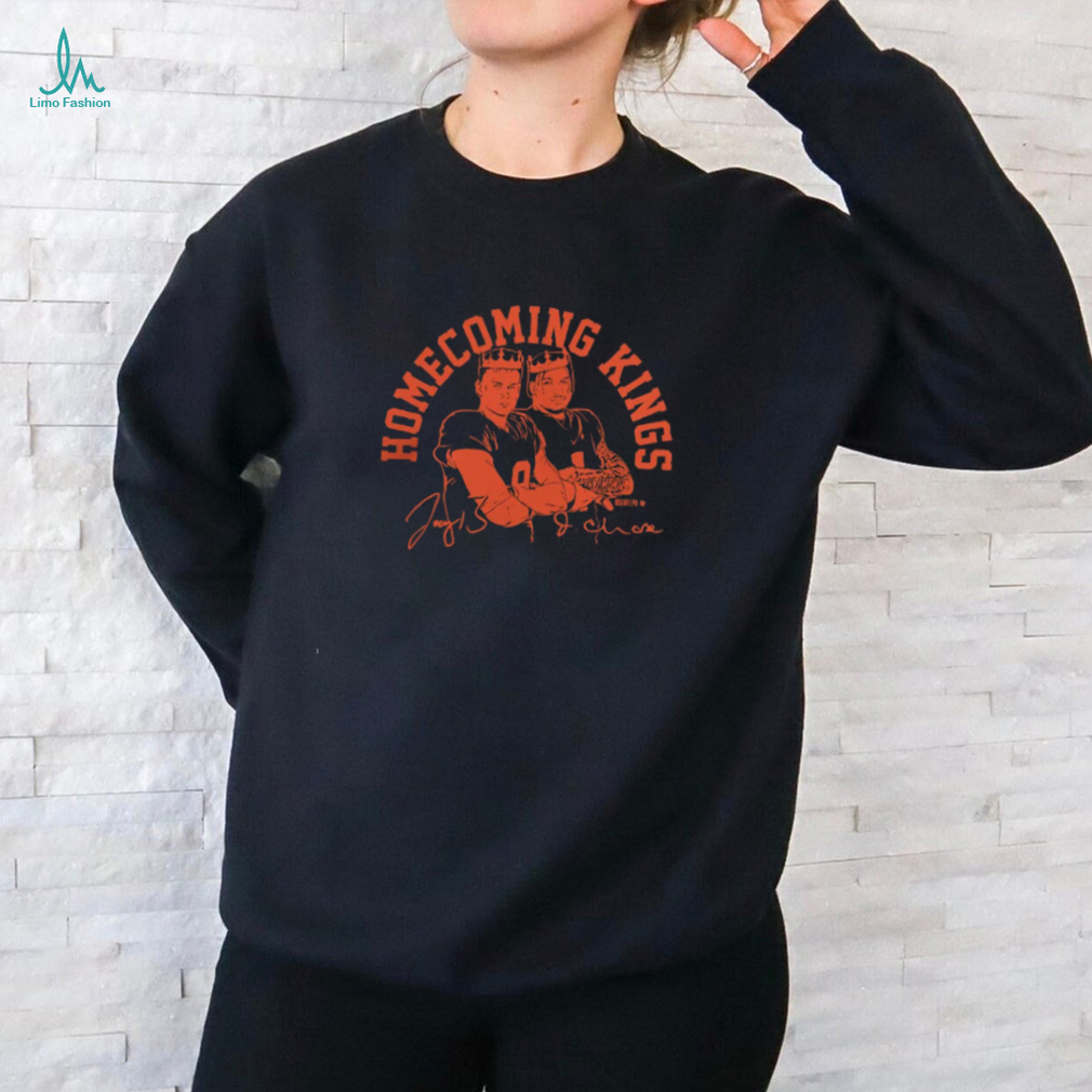 It wasn’t long before the most amazing thing Joe Burrow And Jamarr Chase Homecoming Kings shirt . There was a plaintive meow from the bathroom. Tiger’s sister, Panther, went into the spare room opposite and stood against the far wall. Then she went charging across the floor toward the bathroom and gave a loud squeal just before she hit the door with her side. The door handle went down, Panther hit the door, it opened and out walked Tiger.