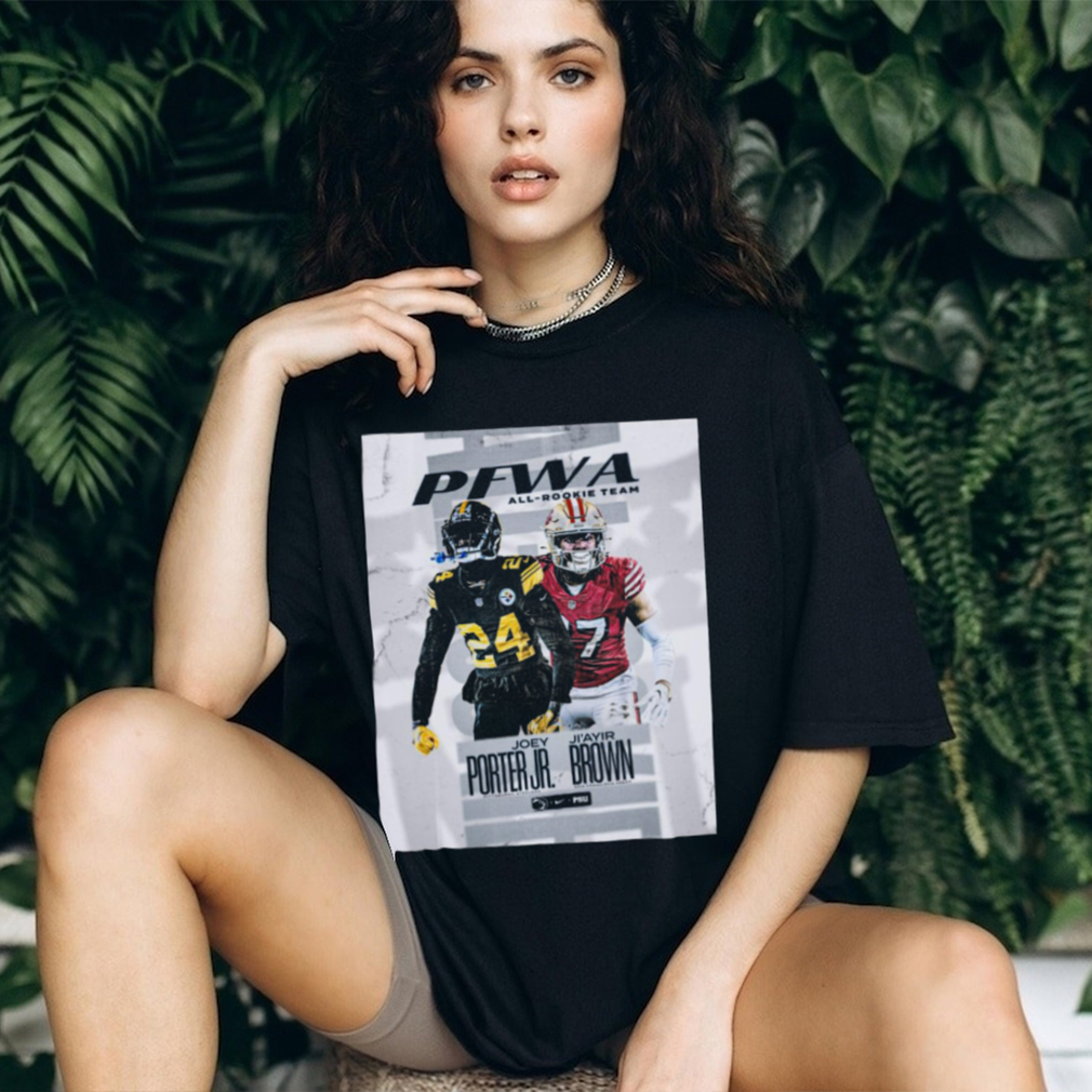 Joey porter jr. and ji’ayir brown pfwa all rookie team shirt1 is a must-have for any Funny who loves all things teejeep. These shirts typically feature popular Trenđing Shirt characters, quotes, or logos, and come in a range of styles and colors to suit any taste. Some designs may even feature the dad’s favorite Trending or characters, making them a personalized and thoughtful gift.