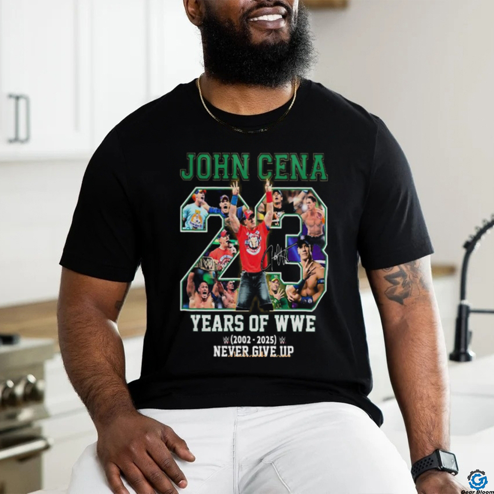 John Cena 23 Years Of WWE 2002 2025 Never Give Up Thank You For The Memories T Shirt