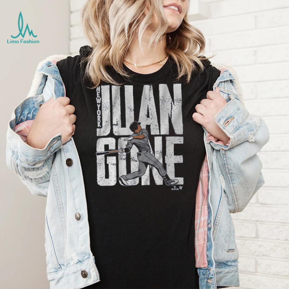 Keep tabs on all of Juan Soto Juan Gone New York Shirt orders. It’s important to be aware of all the possible delays your orders are facing so that you can keep your customers updated. If factors change and delays increase on a given order be certain to quickly share this information with your customer. Consider sending update emails to customers that have active orders during the holiday. You know that they’re thinking about it and if they don’t hear from you they’re likely to contact you. So be proactive and send out frequent alerts. They don’t have to be long. Just a quick blurb stating the current status of the order and how much longer delivery is likely to take. More than anything customers want to know that you understand why they might be upset and that you’re doing the best you can to keep them alerted to the status of their order. This small gesture will go a long way.
