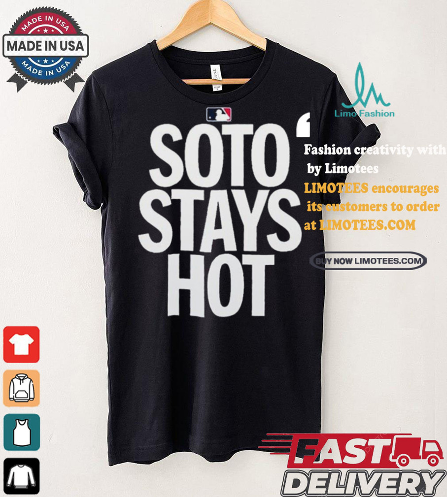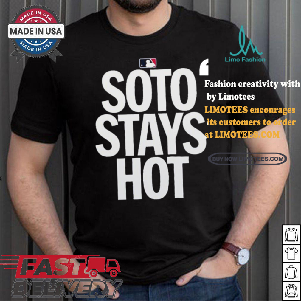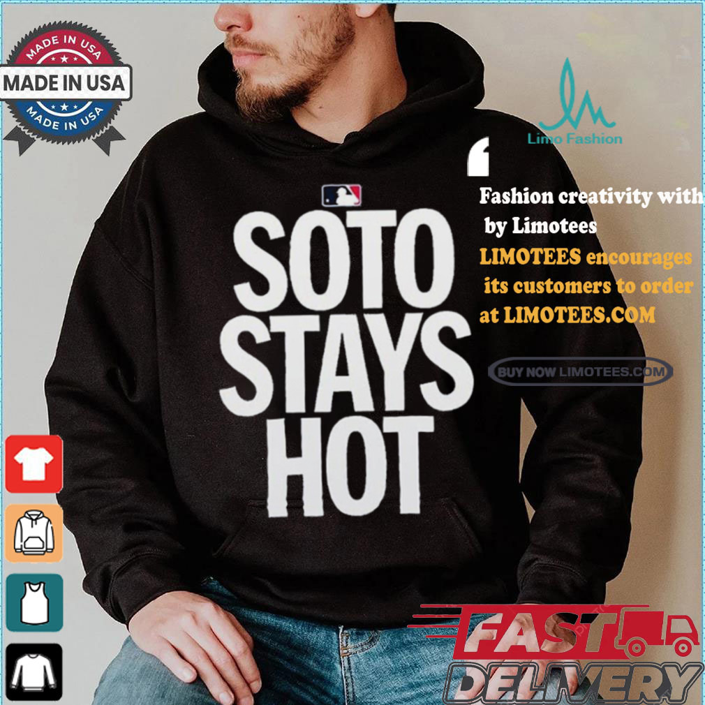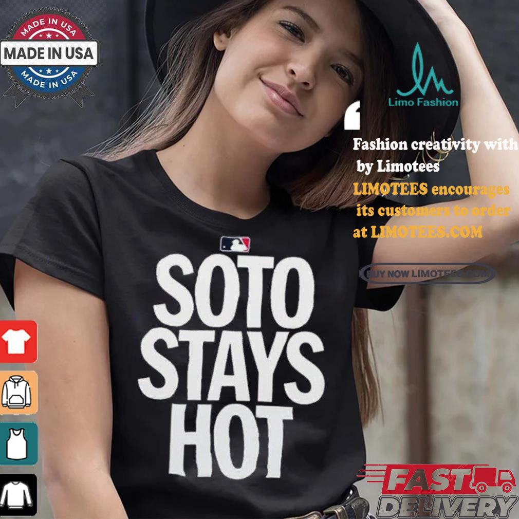 The Juan Soto Soto Stays Hot Shirt to answering your question is experience. We exist to experience; we know we exist because we experience our own existence. The second key is observation. We observe our existence, our experience. We witness, record, and reflect upon our experience. The third key is intention. From observations of our experiences, we build a theory of “reality”, and make choices to act or not act based on that theory. We form an intention to create a specific experience that we want to observe. Now we have a sufficient solution to the problem. Experience, observation, and intention together create reality. They cannot exist without each other. None is more fundamental than the other, and none can be removed without destroying the others. Experience, observation, and intention: the grand experiment. We exist to try things, experience them, and observe the result. There is no meaning beyond that; when we are gone, all those things are gone too. We should use the little time we have to make as many experiments as possible. We have been blessed with the opportunity to experience, observe, and intend, and we should not waste it.