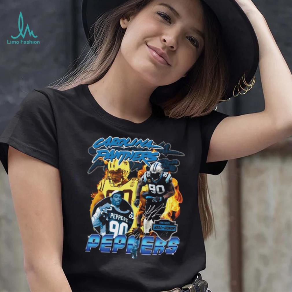Its increasingly harder to get the NFL to commit to what a CATCH actually is (a TD in Chicago can be called a non catch in Seattle, even though the same exact type of Julius Peppers Carolina Panthers Mitchell & Ness 2023 Hall of Honor T Shirt catch was made). The main reason for this, the NFL does not hire FULL TIME officials. These are men (and now women) with other jobs that while they are fully trained, do not do this full time as their main work. Further more, NFL officials work together as teams during the regular season. The Playoffs for Referees is just like for the rest of the NFL..the best of the best get to join in. That means you have Line Judges from one team mixed with Referees from another team, because those two people graded the highest during the season, and their reward is.. to ref the playoffs…and Super Bowl. A lot can be said about team chemistry, and how well a Julius Peppers Carolina Panthers Mitchell & Ness 2023 Hall of Honor T Shirt team works together. Well keep that in the Officiating too please NFL. Pick the best TEAMS and keep them together in the NFL.