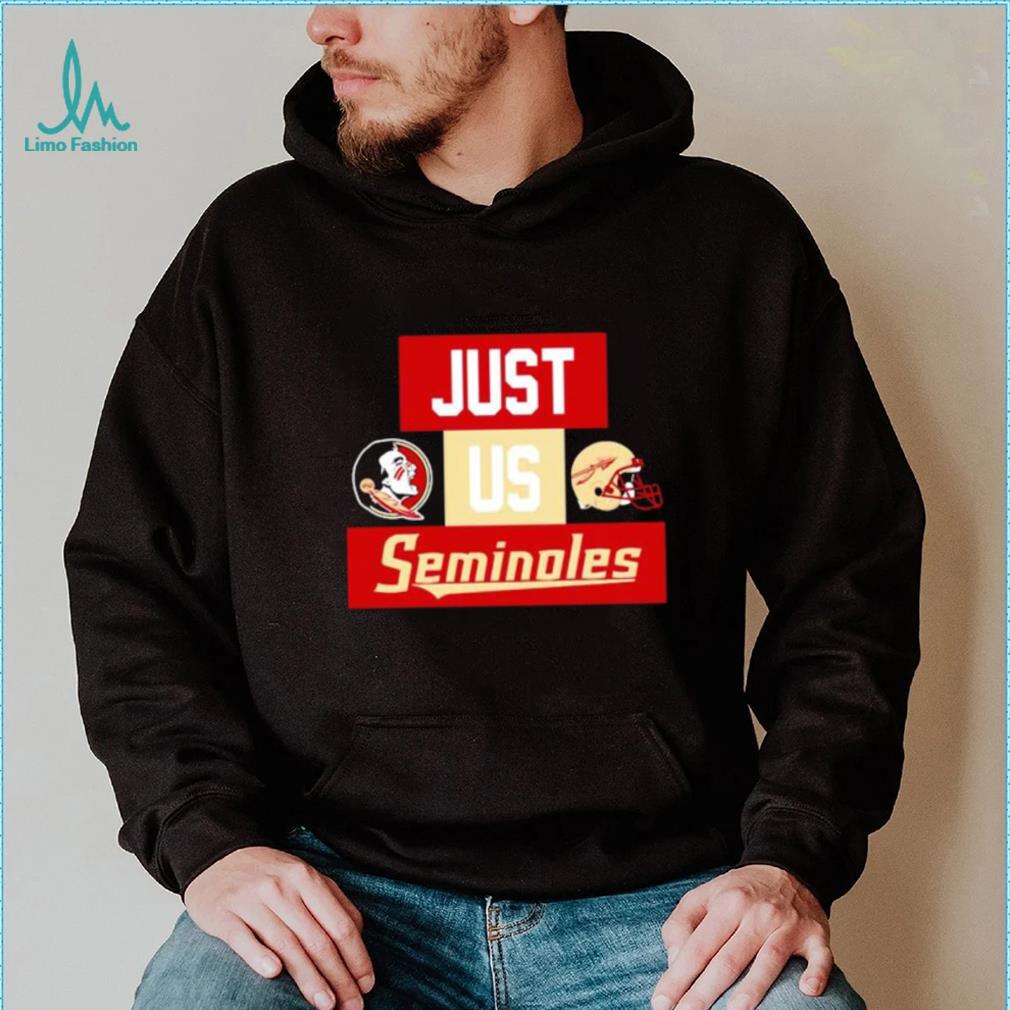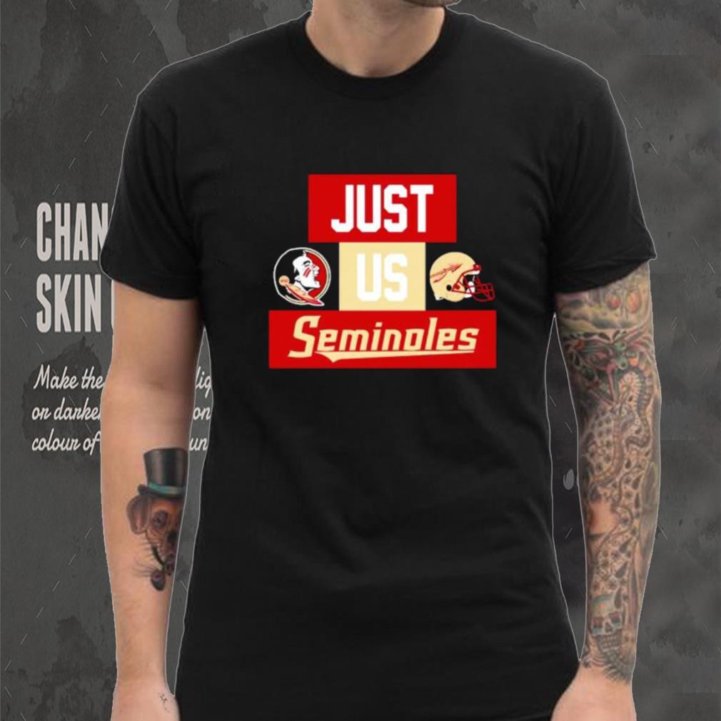 But with the spending you will increase the production of Just us Florida State Seminoles helmet logo shirt. Either way, in the macroeconomy, “Spending” is what leads to wealth production, “not spending” reduces wealth production and does nothing to increase money saved. That money saved will exist whether used for spending or not. So on either front, if the goal is to increase savings, and increase the net production of wealth, “not spending” is the wrong advice. “Not spending” will not increase the savings that is the preservation of investment, and it will likely not increase the net production of wealth, in fact it is more likely to decrease both. In the macro economy, “not spending” is more likely to have negative effect on the production of wealth and standard of living, than a positive one.