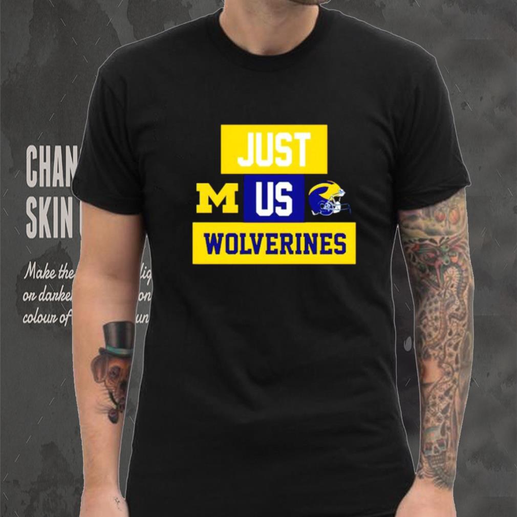 ()Because the Falcons were divisional champs, they’ll also have to play the Dallas Cowboys and Seattle Seahawks, division champs of the other NFC divisions they’re not fully playing. If they’re healthy, none of these teams are undefeatable, but there’ll be challenging matchups in large amounts, and lots of Just us Michigan Wolverines helmet logo shirt. And with that schedule, chances are this division’s not going to get a wild card, so the need to win the division is high.