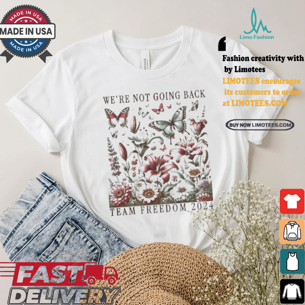 Kamala Harris Tim Walz Team Freedom 2024 We’re No Going Back Botanical Flowers Butterflies T shirt