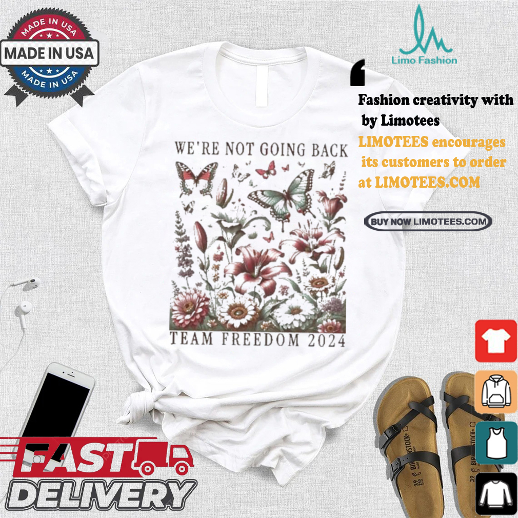 ()Kamala Harris Tim Walz Team Freedom 2024 We’re No Going Back Botanical Flowers Butterflies T shirt