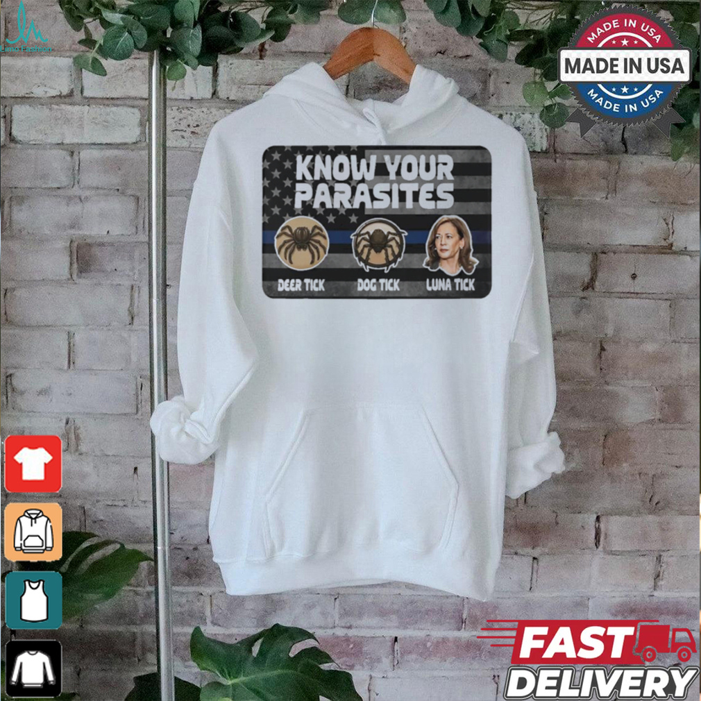You can be happy in the midst of the biggest Kamala Know Your Parasites Deer Tick Dog Tick Luna Tick Shirt . Just make peace with the concept that the way you feel no longer reflects what’s going on around you. Waltz to your own tune, like one of those dudes on their skateboards, who wear headphones and have clearly detached themselves. Of course continue to make only supremely rational choices and keep dedicating yourself to all things that help build a successful life, but you are no longer dependent on having finished before you are allowed to be happy. I’ve been at it for almost ten years now, and it has been a triumph.