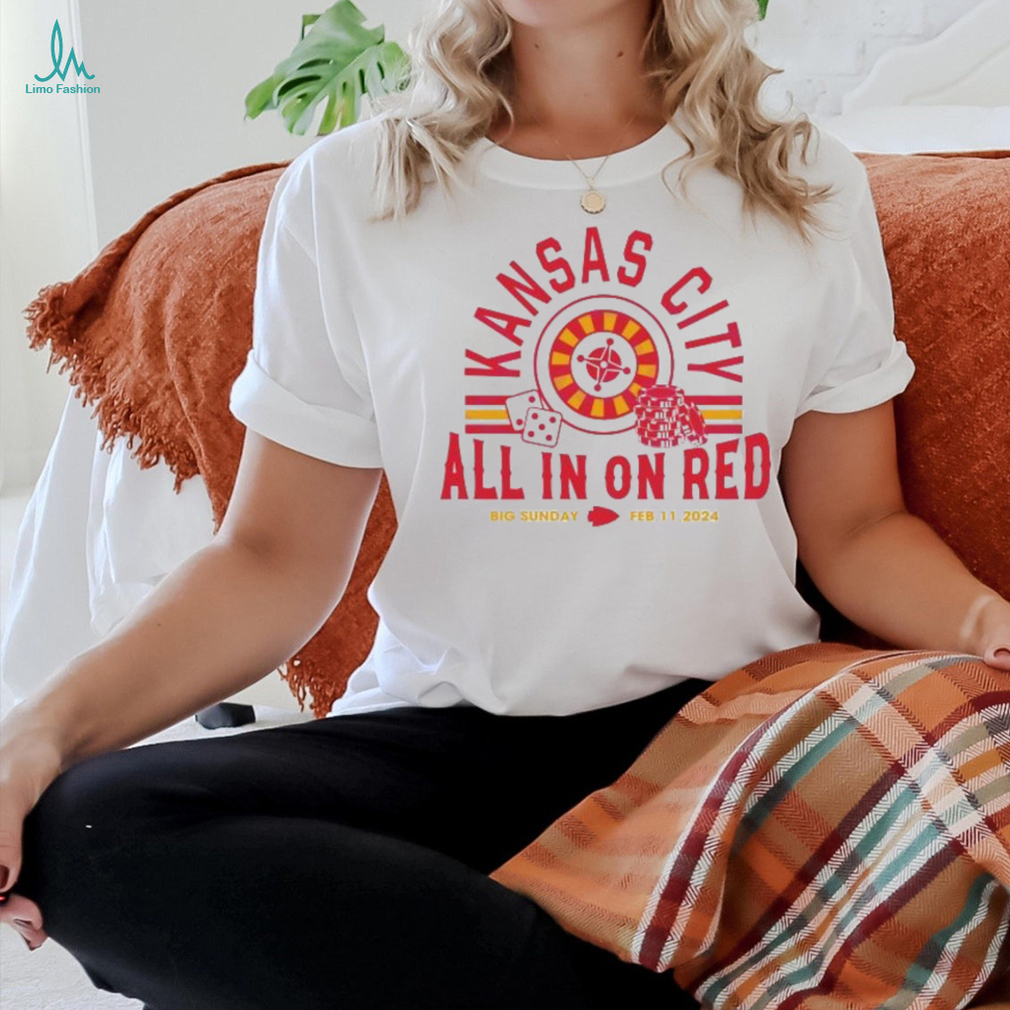 Simply look at Steve Jobs, the guy who ran Apple so well. He was a Kansas City All In On Red Big Sunday Shirt believer in “natural” medicine, in fact he wouldn’t bathe since he felt this somehow or other weakened him but his fellow workers had lots of problems with this. He developed Pancreatic Cancer nothing may have done him any good but from the little that I’ve found on his case he may have had a rare case, like Ruth Bader Ginsberg, where prompt surgery may have saved him. He wanted to try some “natural treatments” first, he did, and you know how that turned out. Just because you know a lot about a lot of things don not assume that you know everything about everything. He was in many ways a brilliant man in most areas but not in the treatment of pancreatic cancer. The worst part is he got a liver transplant later on when he decided to try regular medicine, something that might have saved someone who really needed it. So sad.