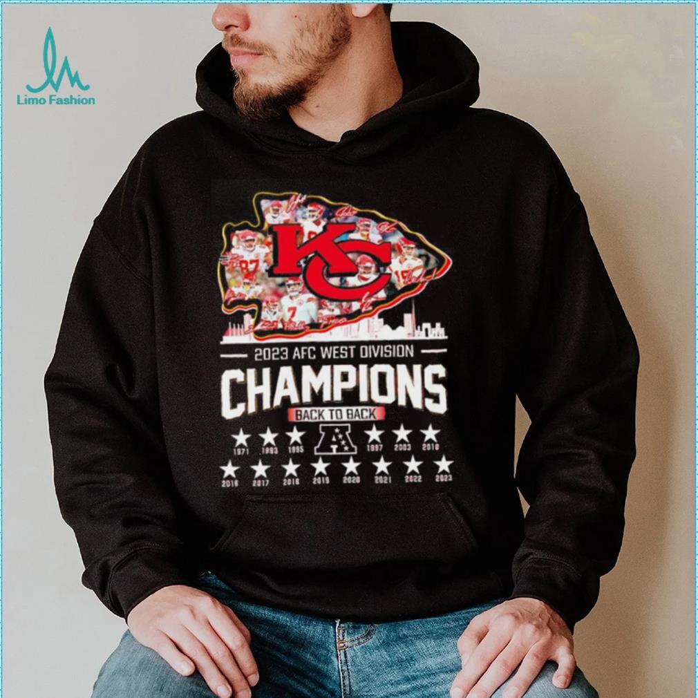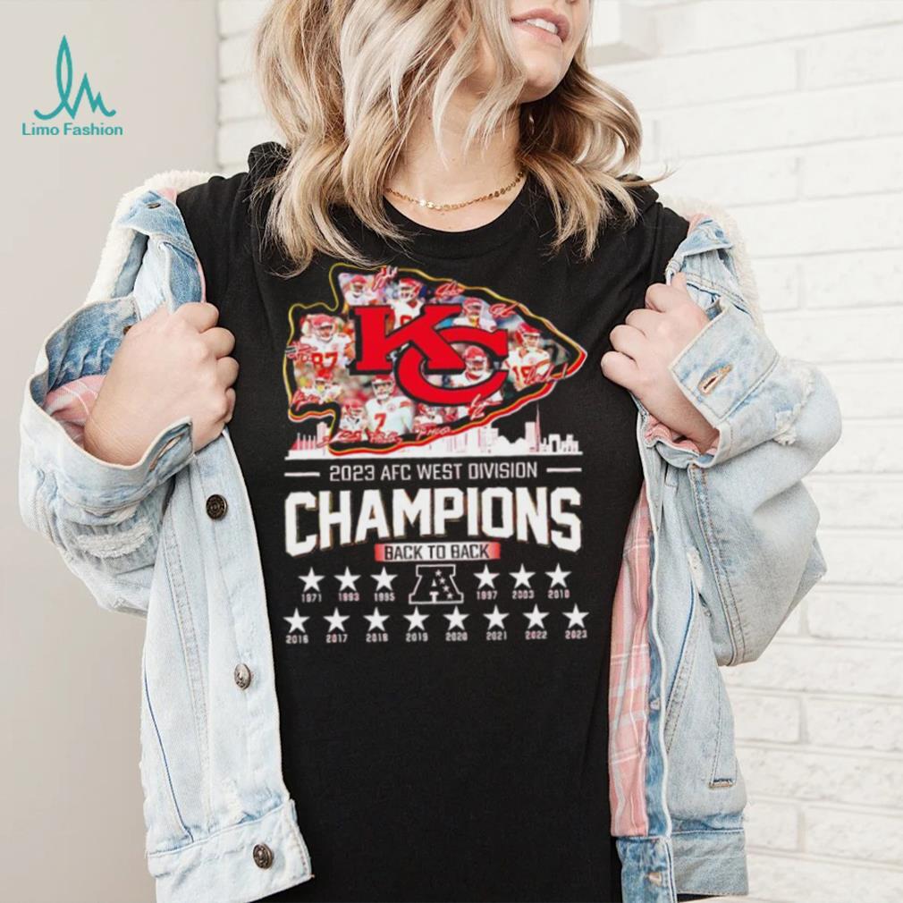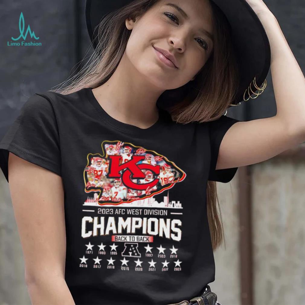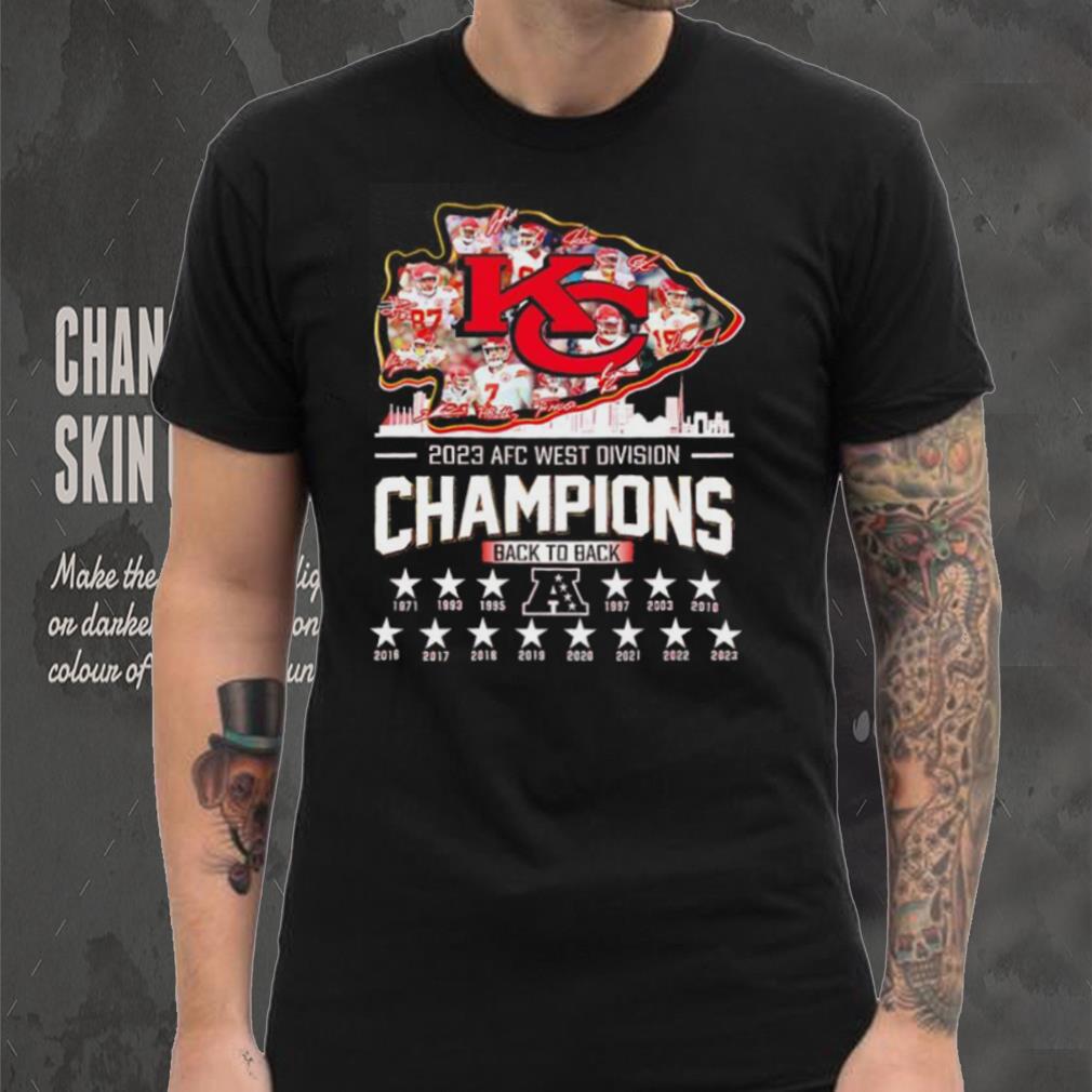 Kansas City Chiefs 2023 AFC west division champions back to back signatures skyline shirt