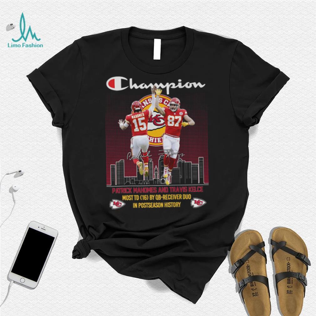 ()Schedule: We don’t have an official schedule released yet to know when the Falcons are playing each team, but we do have all the Kansas City Chiefs Champions Patrick Mahomes And Travis Kelce T Shirt to know who they’re playing. The Falcons will have to make it through Cam Newton’s Carolina Panthers, the previous season’s Super Bowl loser, who are recovering from major 2016 injuries (at least hopefully, lots of concussions there) and looking to get back in the playoff picture. Their division, the NFC South, is paired to play every team in the NFC North and AFC East in 2017, so they will have to rematch the Patriots & Packers from this season’s playoffs, and also play the Lions and Dolphins (fellow playoff teams from 2016).
