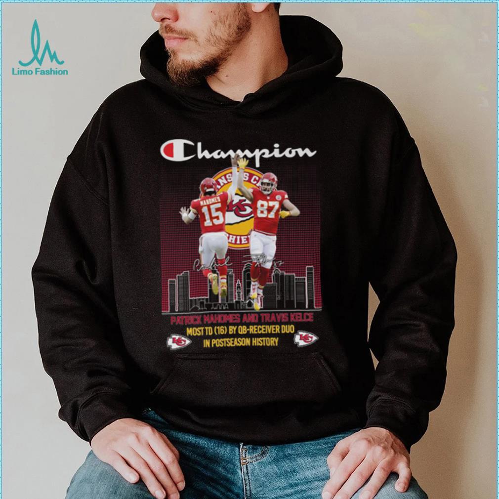 It’s called the Lunar New Year because it marks the first new moon of the Kansas City Chiefs Champions Patrick Mahomes And Travis Kelce T Shirt calendars traditional to many east Asian countries including China, South Korea, and Vietnam, which are regulated by the cycles of the moon and sun. As the New York Times explains, “A solar year the time it takes Earth to orbit the sun lasts around 365 days, while a lunar year, or 12 full cycles of the Moon, is roughly 354 days.” As with the Jewish lunisolar calendar, “a month is still defined by the moon, but an extra month is added periodically to stay close to the solar year.” This is why the new year falls on a different day within that month-long window each year. In China, the 15-day celebration kicks off on New Year’s Eve with a family feast called a reunion dinner full of traditional Lunar New Year foods, and typically ends with the Lantern Festival. “It’s really a time for new beginnings and family gatherings,” says Nancy Yao Maasbach, president of New York City’s Museum of Chinese in America. Three overarching themes, she says, are “fortune, happiness, and health.