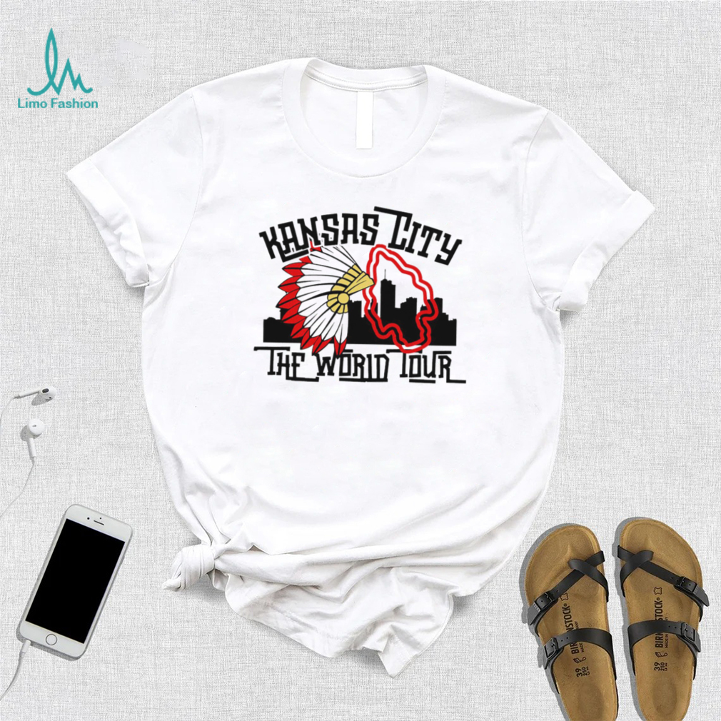 The truckers were speculator and had invested in the Christmas tree to sell to Christmas tree lots so they would have fresh trees. In the past years this had worked out very well, but because of all the Kansas City Chiefs football Kansas City the world tour skyline logo shirt , no one wanted the tree. They were going to have to pay to bring them to the dump, so they decide to give them away. I asked the cop and the owner if I could find a place for them to move to, would let them go, it is Christmas. They agreed. I phoned the radio station (a long time before cell phones, this was done on a pay phone) I told them what the problem, the trees were free, but they needed some place to put the trees.
