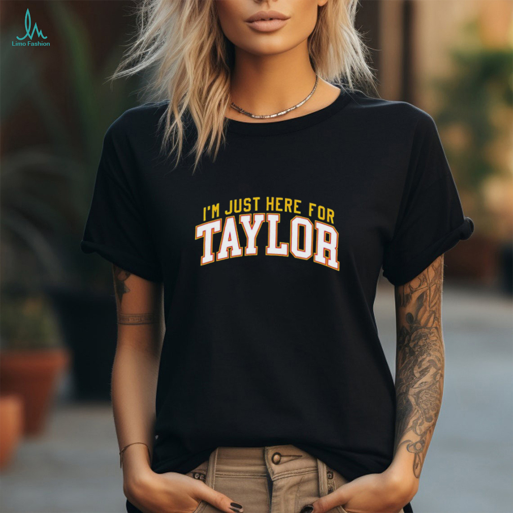 The Kansas City Chiefs I’m just here for Taylor font shirt to answering your question is experience. We exist to experience; we know we exist because we experience our own existence. The second key is observation. We observe our existence, our experience. We witness, record, and reflect upon our experience. The third key is intention. From observations of our experiences, we build a theory of “reality”, and make choices to act or not act based on that theory. We form an intention to create a specific experience that we want to observe. Now we have a sufficient solution to the problem. Experience, observation, and intention together create reality. They cannot exist without each other. None is more fundamental than the other, and none can be removed without destroying the others. Experience, observation, and intention: the grand experiment. We exist to try things, experience them, and observe the result. There is no meaning beyond that; when we are gone, all those things are gone too. We should use the little time we have to make as many experiments as possible. We have been blessed with the opportunity to experience, observe, and intend, and we should not waste it.
