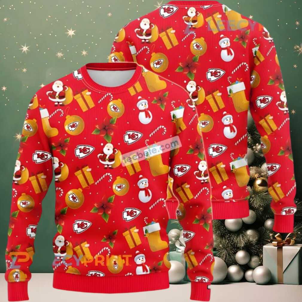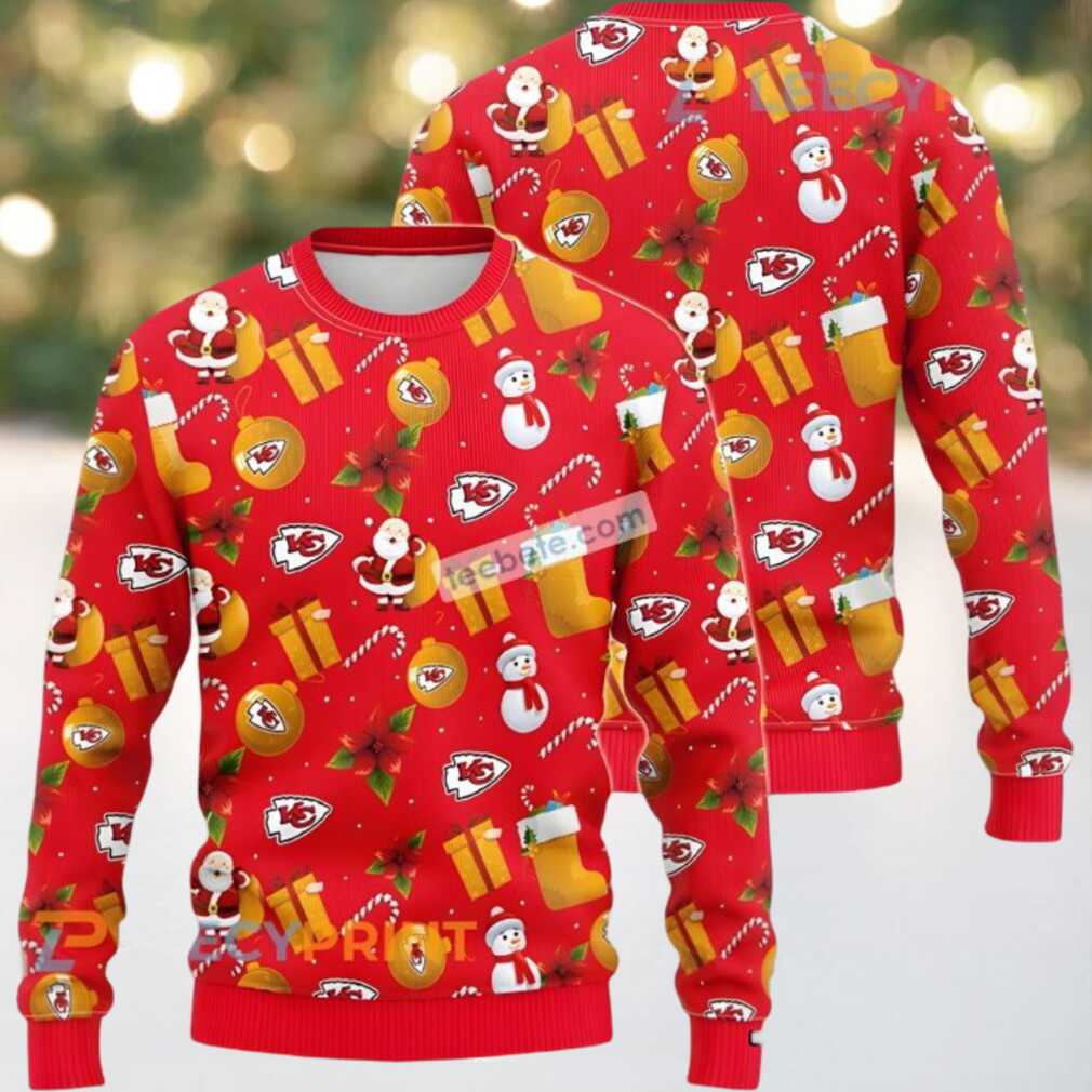 To keep your Kansas City Chiefs Santa Claus And Snowman Ugly Christmas Sweaters looking festive and fresh, machine wash them cold with similar colors. Tumble dry on low heat and avoid direct ironing on the design to preserve their unique details and vibrancy.