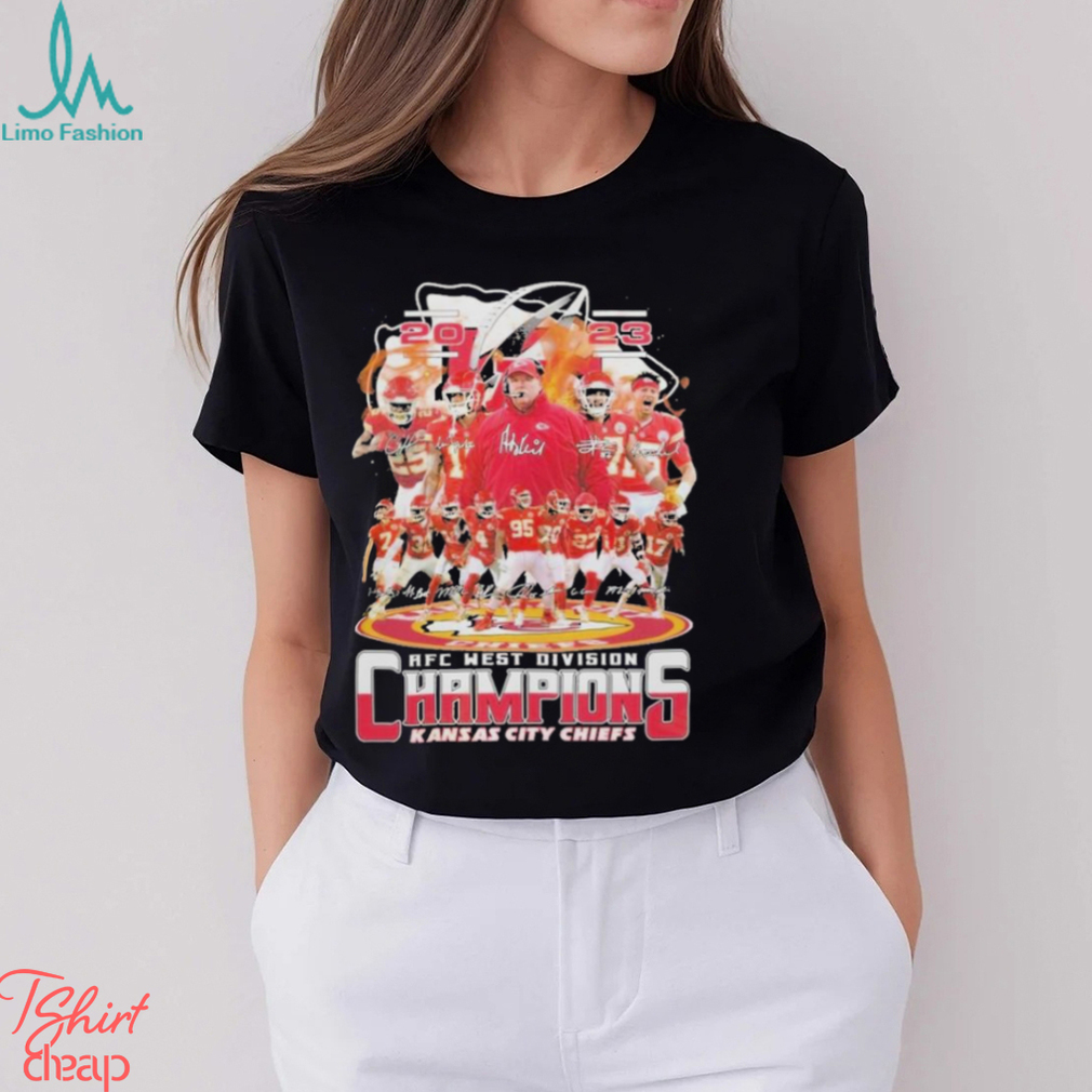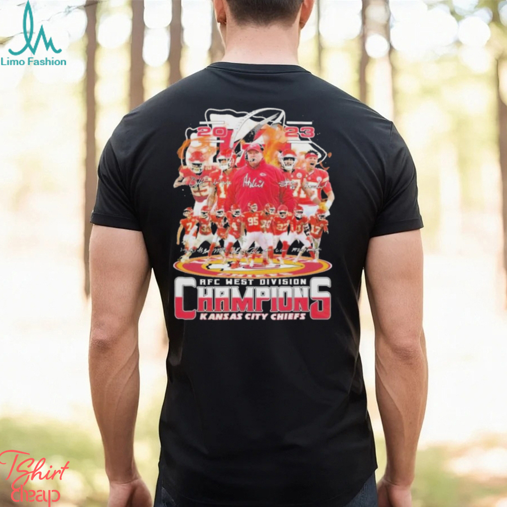 For us, it is Christmas Eve. There are just two of Kansas City Chiefs Sport Team 2023 Afc west division champions Super Bowl LVIII signatures shrit, as we have no children. When we were first married, we always went to my parents’ house on Christmas Day. All of us (my parents, me, my husband, brothers, SIL, nieces, nephew) would open our gifts and then have a Christmas dinner. My husband and I started a tradition of having a Christmas Eve dinner together, just the two of us, and exchanging our gifts to each other after dinner. After a couple of years, we switched from a Baptist church to a Methodist church that has a Christmas Eve service (the Baptist church never had a service on Christmas Eve or Christmas Day unless one of those days happened to be Sunday). The pattern for Christmas Eve then became church, dinner, gifts (and, for some years, a second late evening church service). Meanwhile, my mother finally had to admit pulling off a Christmas dinner was too much, and we went to finger foods or sandwiches. Then she decided that getting everything wrapped and ready by the 25th was too hard, and my brother and his family kept arriving later and later every year because they would spend the afternoon at her mother’s house 120 miles away, so the family Christmas get-together got moved to the Saturday after Christmas, then to the Saturday after New Year’s, then to the second Saturday in January. Christmas Day itself became a non-event. We still keep our tradition of having our dinner and gift exchange on Christmas Eve, and of course, the church service is still that evening as well. Christmas Day is now just a nice day off from work to relax.