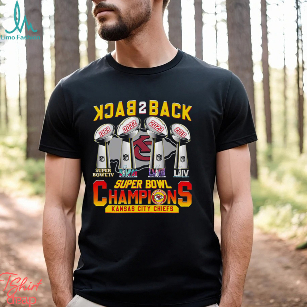 Many of the Kansas City Chiefs Super Bowl Champions Back To Back T Shirt Christmas customs were inherited from older Winter Solstice celebrations—including greenery indoors, feasting and gift-giving. It seems quite likely that the celebration of the birth of Jesus was scheduled at that time in order to piggy-back on existing holiday observances. Halloween is very directly descended from the old Celtic feast of Samhain, when the dead return to visit the living. Modern Pagans observe this and Beltane (May Day) as their major holidays, the Feast of the Dead and the Feast of the Living on opposite sides of the Wheel of the Year. Easter’s Pagan connections are suggested by its English name, Eostara being a Pagan Germanic Goddess associated with the Spring Equinox. The bunnies and eggs probably go back to Pagan times as well.