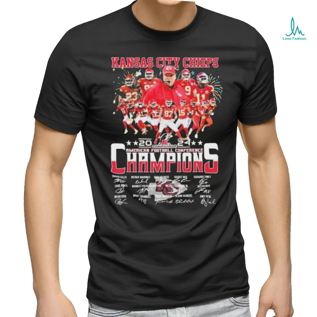 Kansas City Chiefs Team 2024 American Football Conference Champions Signatures Shirt, Hoodie, Sweater, Vneck, Unisex and T-shirt