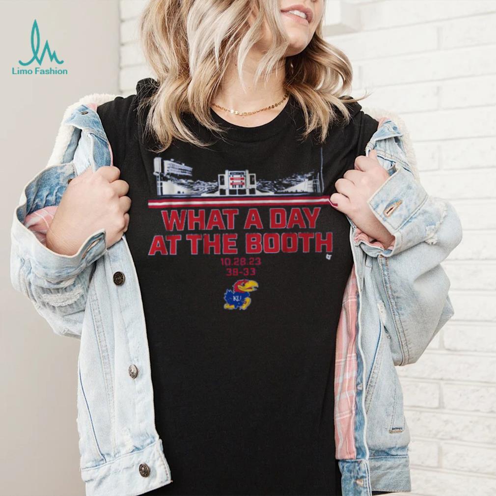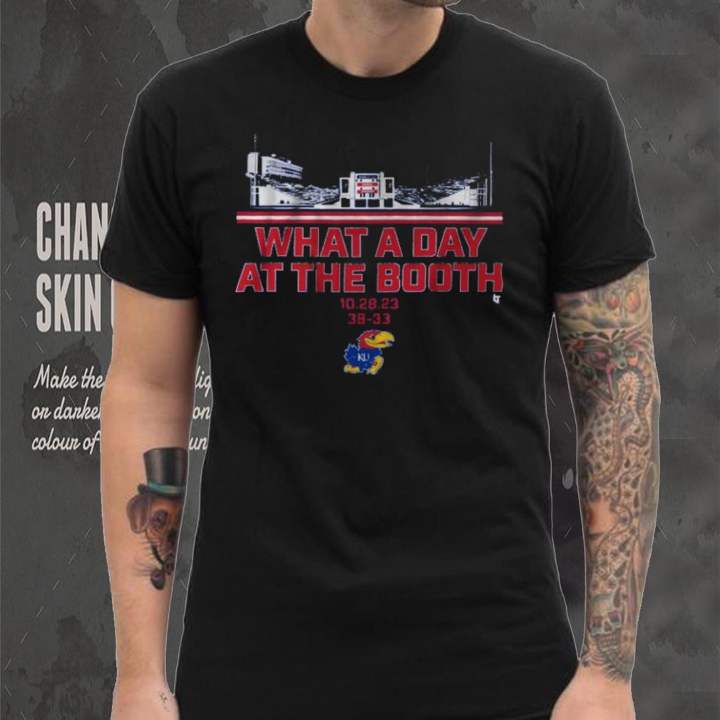 The reason I say this is a meme meant to troll people is people who love Christmas, especially Christians, are always worried there is some war or assault on their holiday. That people are trying to diminish symbols associated with it. Anything from saying “Happy Holidays” to people who get stressed when they see a race-bent Santa Claus. Die Hard is a pretty secular movie that treats Christmas as something that is just going on in the background. There’s no reason to believe that Christmas matters to any of the Kansas Football What A Day At The Booth Shirt in this film, or that anyone has any particular reverence for it. So when you say “Die Hard is my favorite Christmas movie” it is akin to saying “Happy Holidays” to all the dorks that would say something like Fred Claus.