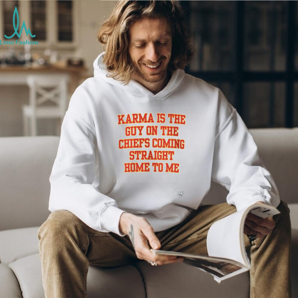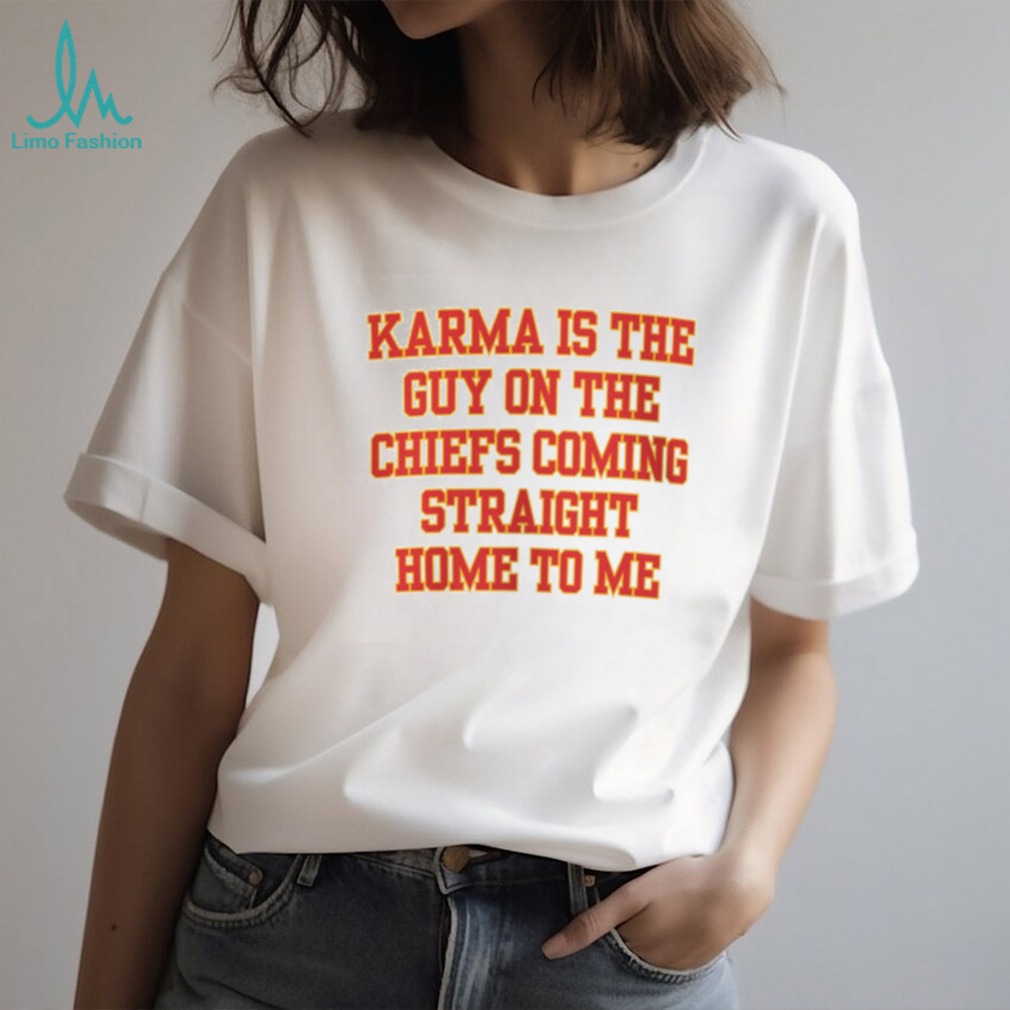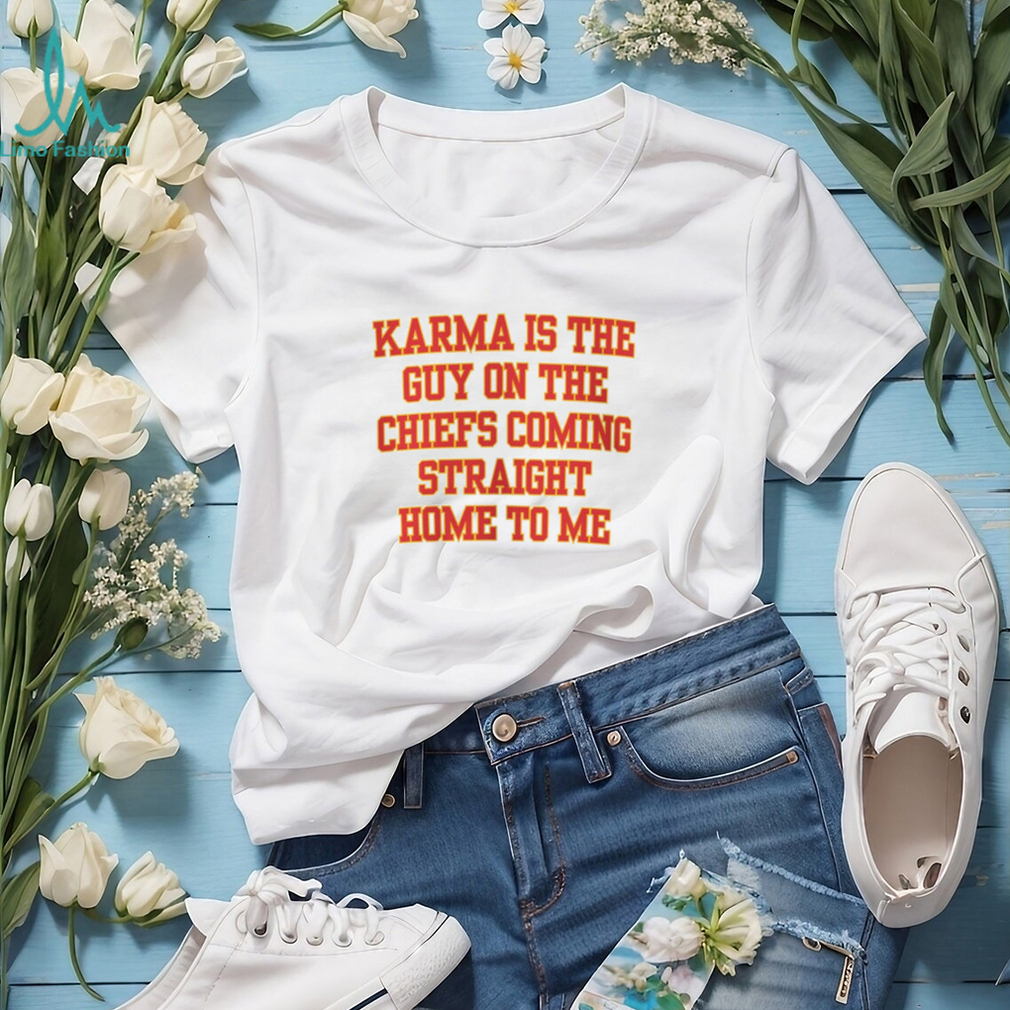 Karma Is The Guy On The Chiefs Shirt, Coming Straight Home To Me. Categories of this T-shirt is teejeep, Karma Is The Guy On The Chiefs Shirt, Coming Straight Home To Me from Dadyshirt ✓ Unique designs ✓ Large assortment ✓ Comfortable ✓ High-quality ✓ Easy to care for ✓ Available in a range of colours and styles for men, women ✓ Shop now ✓