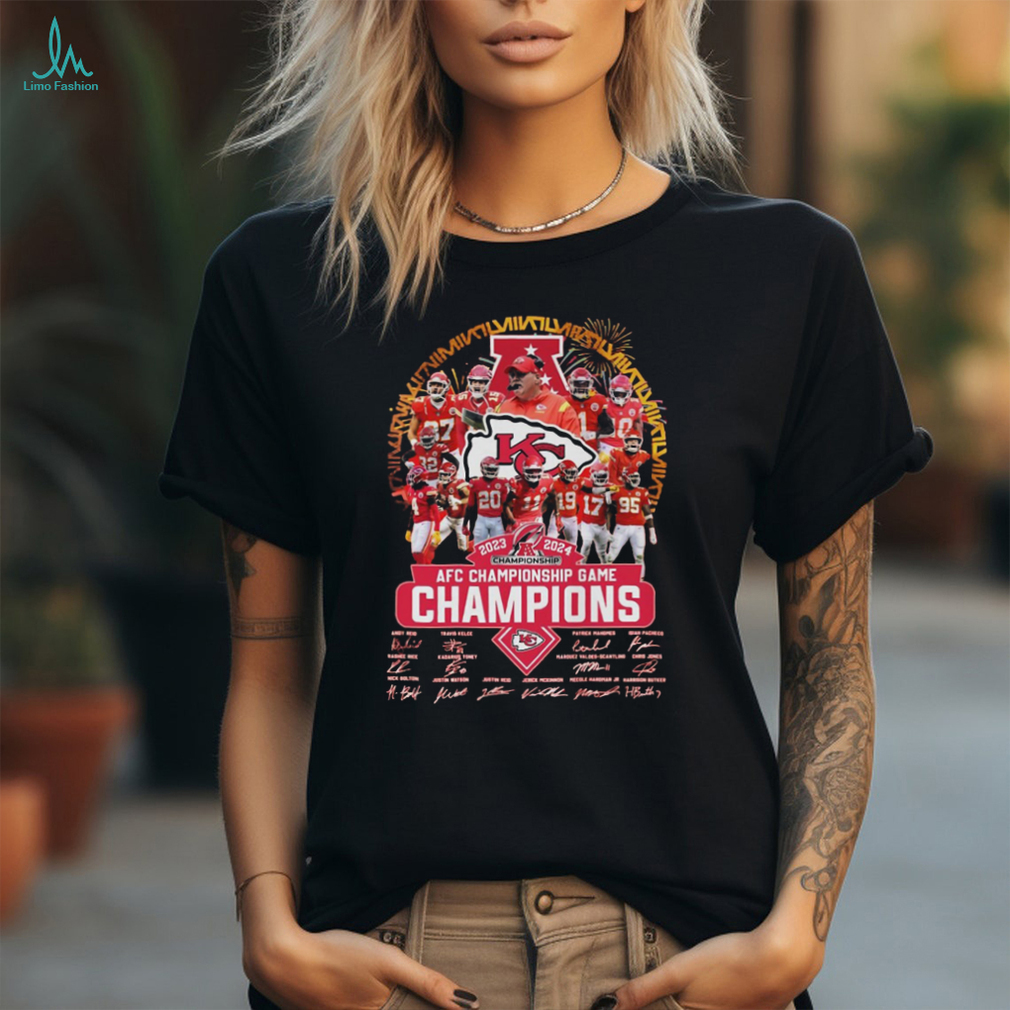 KC Chiefs AFC Championship Game Champions 2024 signatures t shirt