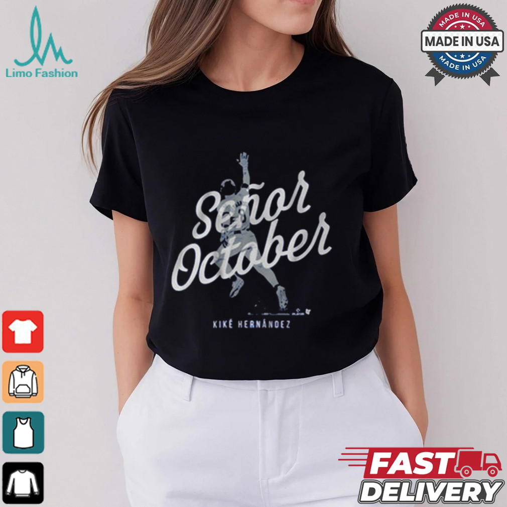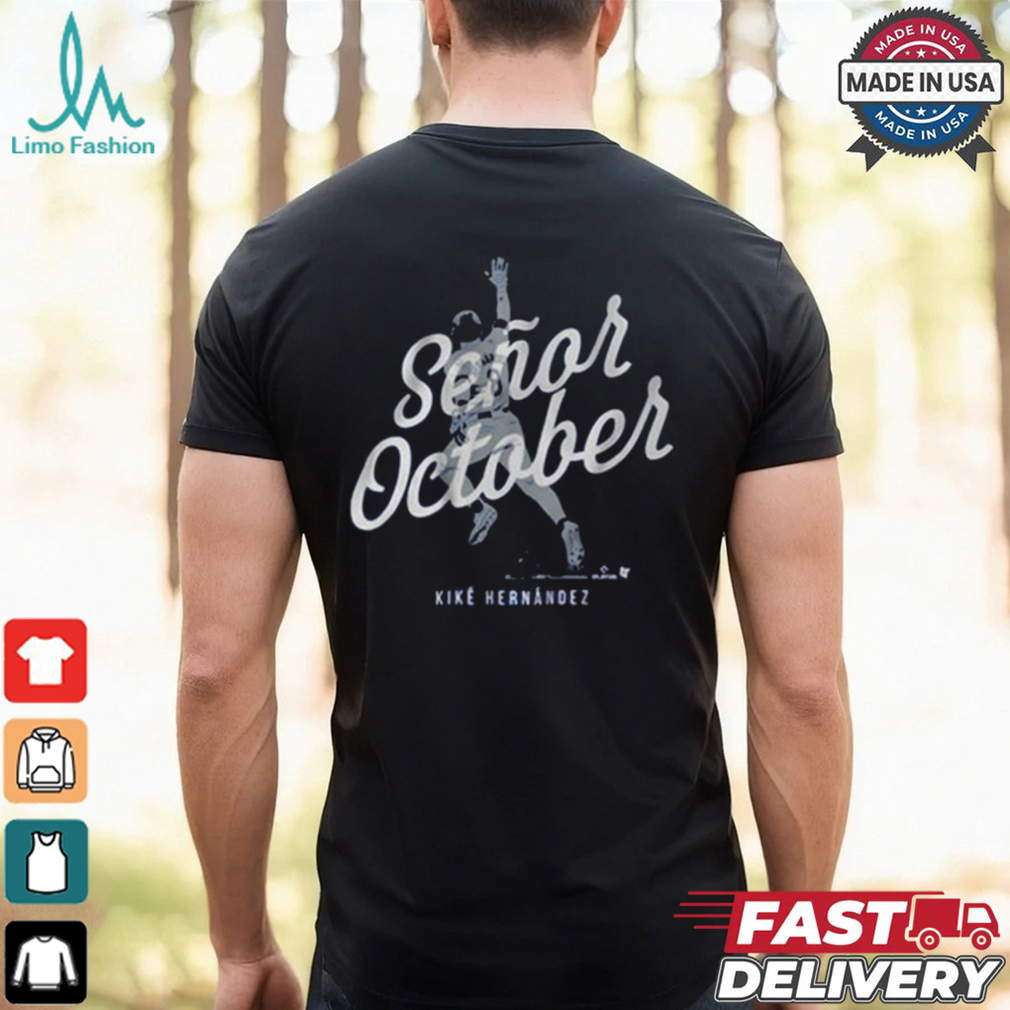 Since many households would hold parties during these two evenings, they may not concentrate on their jobs as they do in the Kike Hernandez Señor October Los Angeles Dodgers MLB t shirt time. Therefore, the company would rather let their employees stay at home to do some shopping and preparation than stay in the office to think something else not related to work. There has a policy stating that Christmas Eve is a holiday in employee handbook or employment agreement or contract. It might state that employees receive paid time off or premium pay for working on the holiday. For those retail business workers who are more busier during these two days, they may arrange other time to have a rest, while those who have these two days off and get paid would not have this advantage. They probably arrange another two holidays for working days or do not compensate overtime work. For those companies who do not need to deal with customers, if multiple employees ask for the time off, the company could accommodate such requests.