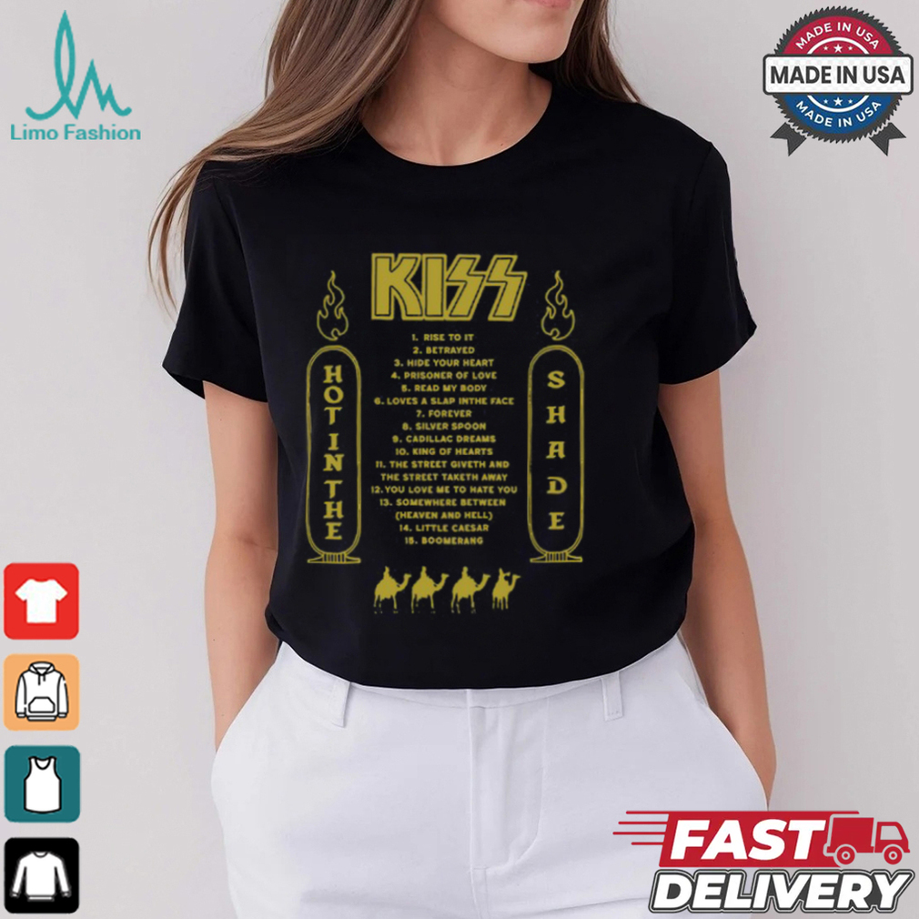 My Christmas Eve mail one year included a Kiss Hot In The Shade Tracklist 35Th Anniversary Shirt summons to attend a county court hearing soon after Christmas in January in connection with an association of which I was an officer. At the time the association was collapsing in acrimony with endless quarrelling between the members, and a member who had been expelled from it was taking myself and three other officers to court for unfair expulsion. As the case was not properly defended by the association member who had the task of defending it, this member was awarded his costs, which were about £4,000, and so I and three other officers had to pay about £1,000 each out of our own pockets, as the association was insolvent. I hasten to add that the litigation in connection with this association (which involved three different court hearings) was the only time I have ever been involved in any kind of civil litigation in my entire life. A few years later I received another court summons on Christmas Eve, this time a summons to a local magistrates’ court in connection with a motoring offence, namely receiving four speeding penalties within three years. When I appeared in court in January again, the magistrates told me that they could see no reason why I should not be disqualified from driving, and so I was disqualified for a six month period I also hasten to add this was the only time in my life I have ever been the defendant in a criminal court (and of course the only time I have ever been disqualified from driving). Naturally both of these items of mail arriving as they did on Christmas Eve somewhat marred my Christmases in those two years.