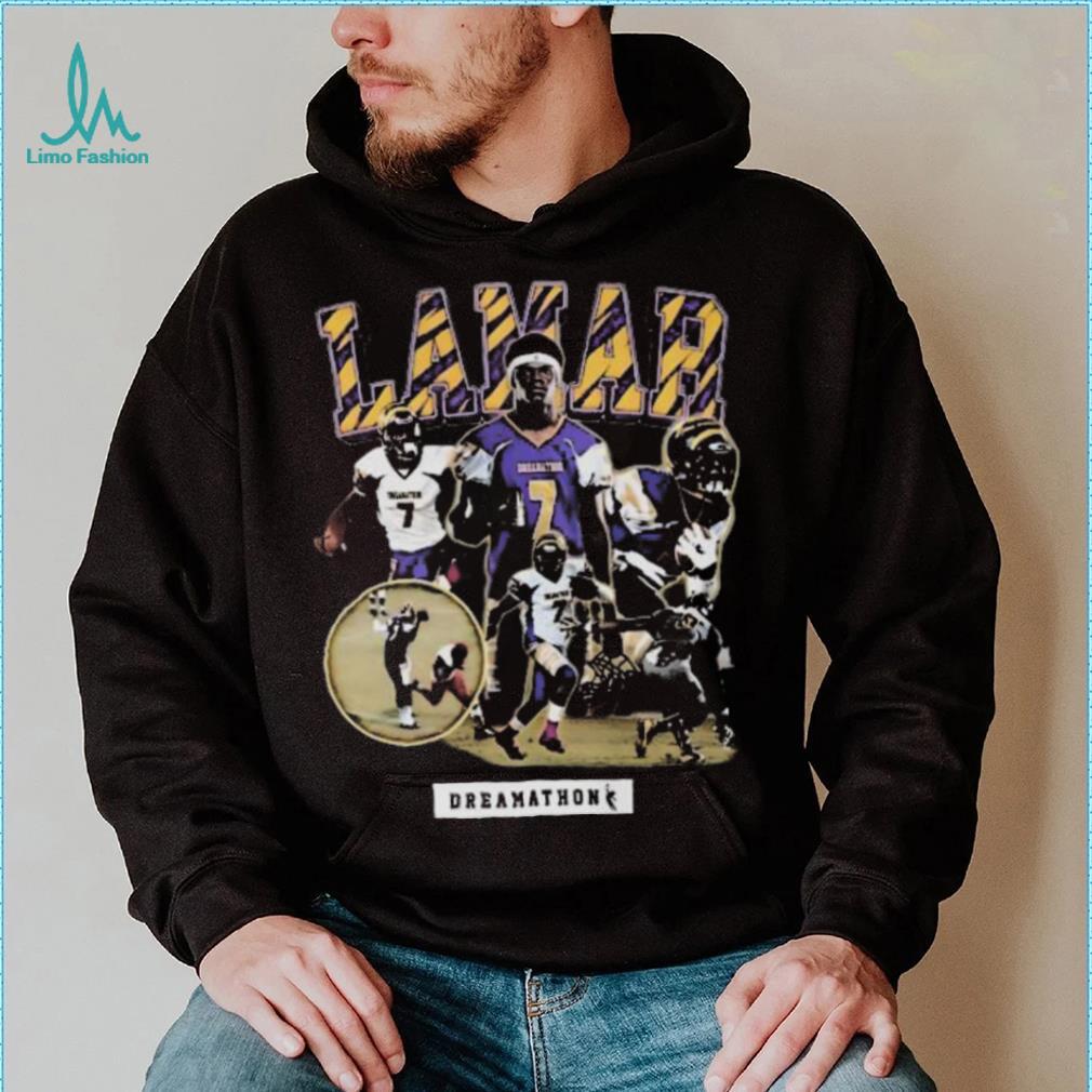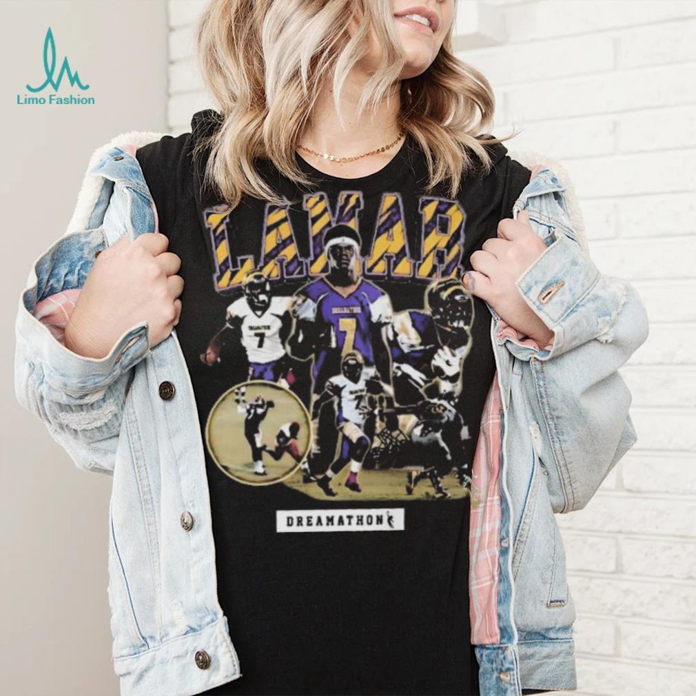 Both were tremendous multi-sport athletes. Brown excelled at football, baseball, basketball, track and lacrosse. In high school, Brown earned varsity 13 letters in those sports. Brown still holds several NFL records and he did it all in only nine years of playing for Lamar Jackson Dreamathon 2024 Shirt the Cleveland Browns. Brown is in THREE halls of fame. The Pro Football, College Football and Lacrosse halls of fame. Deion was a great player in the NFL for five team, the Atlanta Falcons and Dallas Cowboys among others, and a great college player at Florida State. He played Major League Baseball for four teams, including the Cincinnati Reds and Atlanta Braves. Like Brown, Sanders in the Pro Football and College Football halls of fame, but it’s doubtful he’ll make Cooperstown. But it wasn’t for a Lamar Jackson Dreamathon 2024 Shirt of trying (except when he was on the Yankees). My nod goes to Jim Brown as he dominated in everything he did. Deion was great, but he was more interested in putting on a show or being a hot dog than he was a team player.