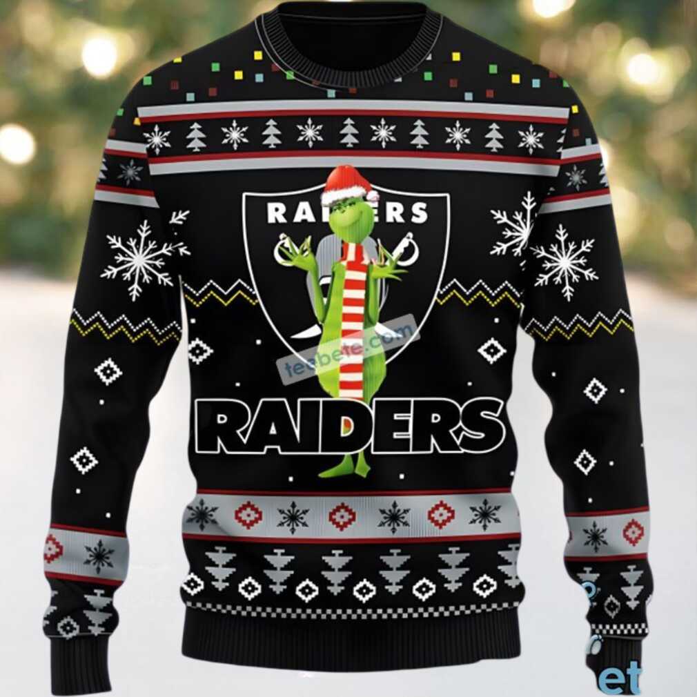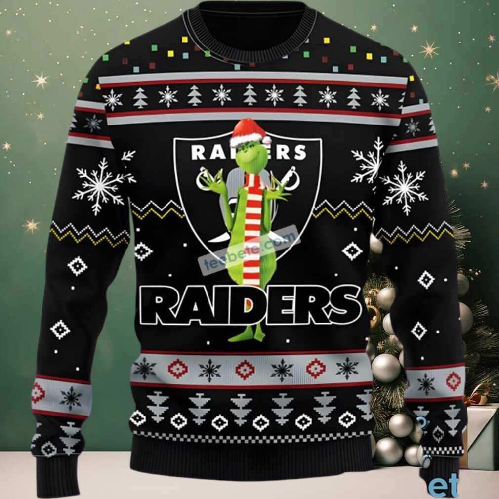 What Makes This Las Vegas Raiders Santa Hat Grinch Ugly Christmas Sweater Black Epic?