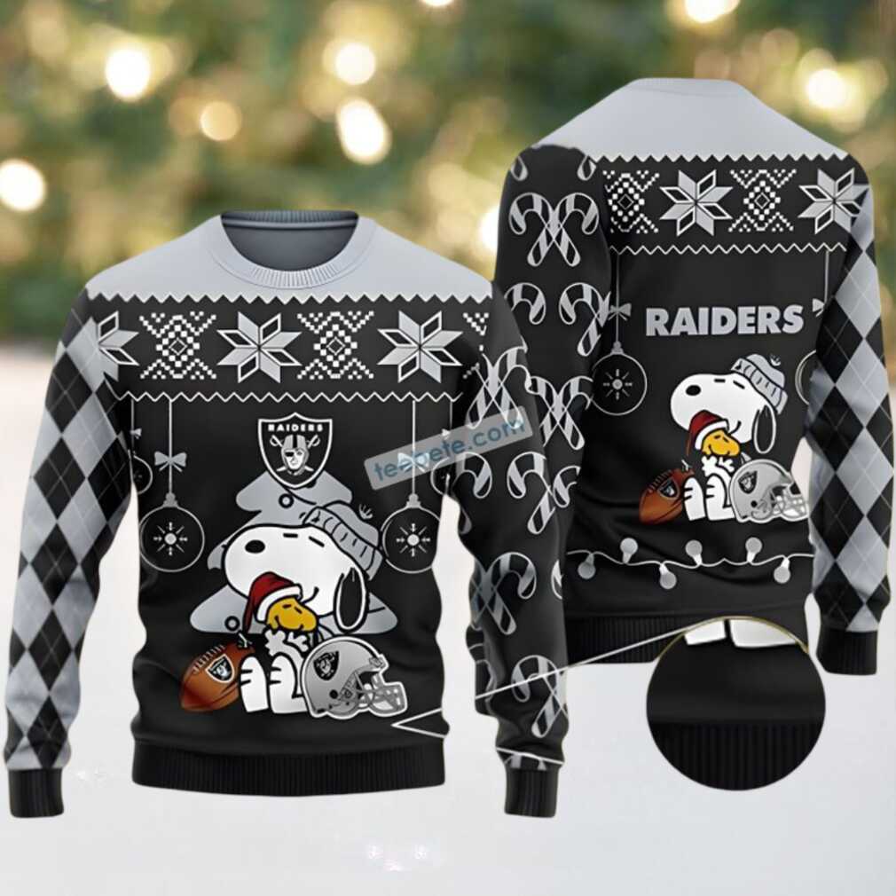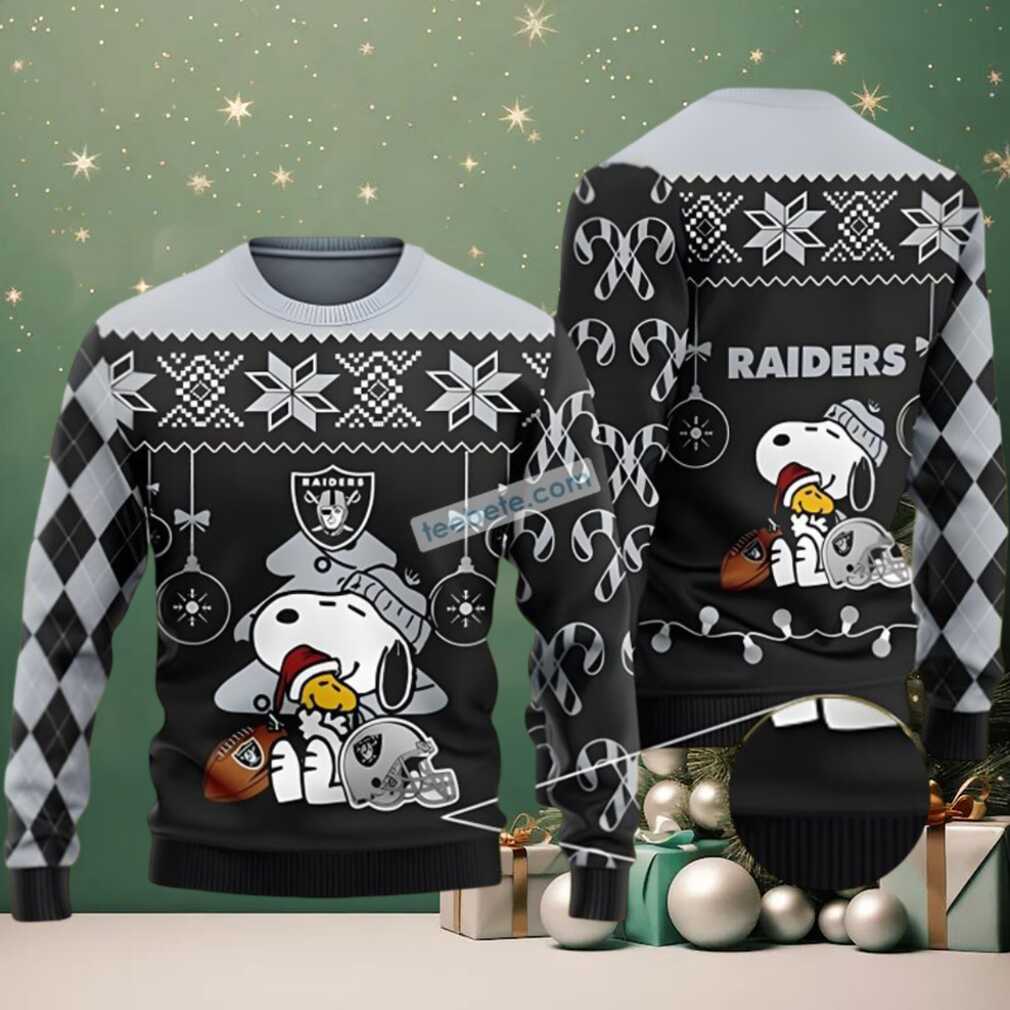 This Las Vegas Raiders Snoopy Woodstock Ugly Christmas Sweater features an endearing design of Snoopy and Woodstock celebrating Christmas in Raiders gear, making it a standout piece at any holiday gathering. It’s the ultimate statement for showing off your team loyalty with a touch of playful nostalgia. Crafted from a soft, comfortable fabric blend, this Raiders Christmas sweater is designed to keep you warm and cozy, whether you’re at a holiday party, a game day watch event, or simply enjoying festive moments at home. Its relaxed fit ensures ease of wear, and with various sizes available, every fan can find their perfect fit. It solves the annual quest for a holiday sweater that’s both spirited, comfortable, and brings a smile to everyone’s face.