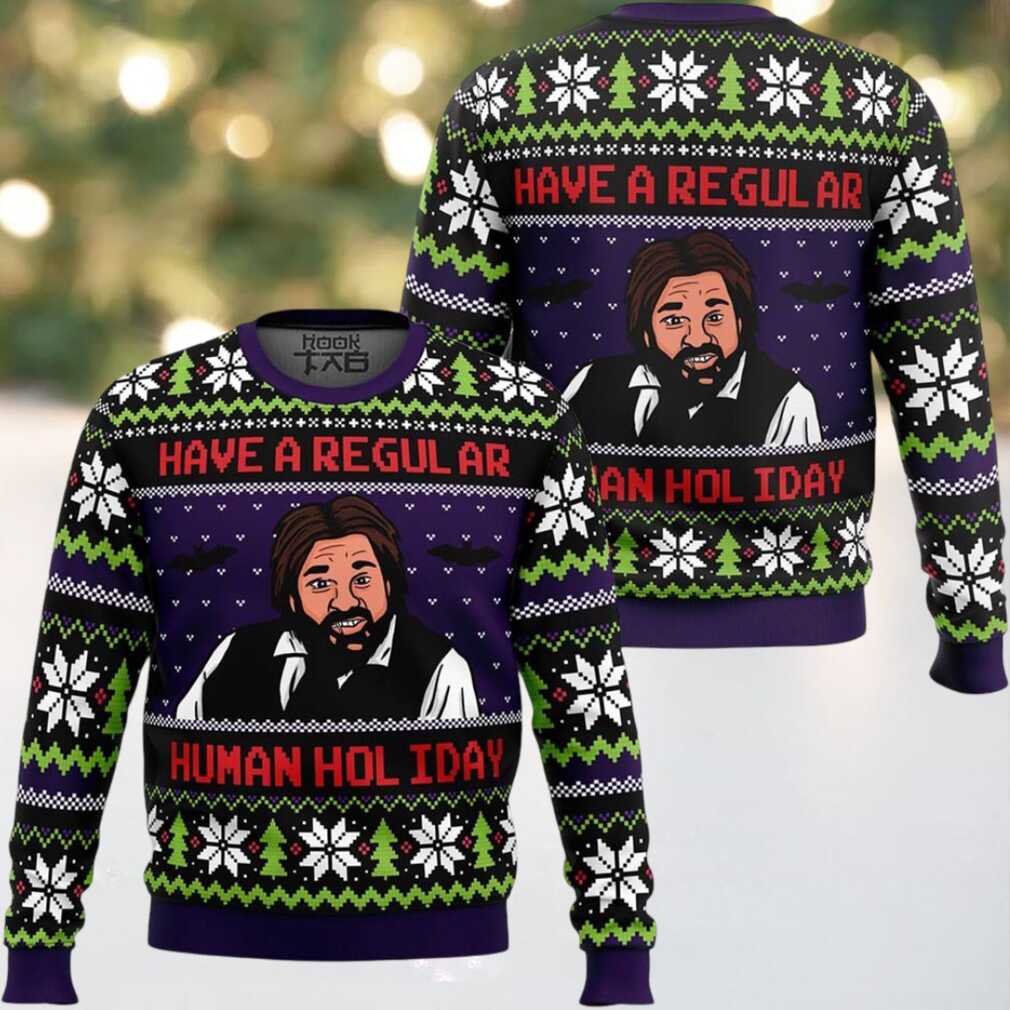 To keep your ‘Laszlo Cravensworth Human Holiday What We Do In The Shadows Ugly Christmas Sweater’ looking eternally dapper, wash it inside out in cold water with similar colors. Tumble dry on a low setting or, for best results, air dry. Avoid ironing directly on the design. Proper care ensures this unique WWDITS holiday sweater remains a cherished part of your wardrobe for many human holidays to come.