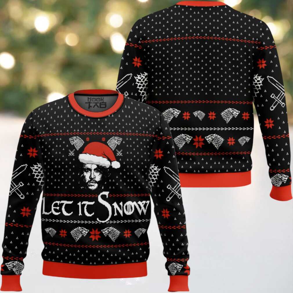 The “Let It Snow Game Of Thrones Ugly Christmas Sweater” is a must-have for the dedicated Game of Thrones fan, the fantasy enthusiast, or anyone who enjoys a sophisticated, humorous take on holiday attire. It’s the perfect choice for an ugly Christmas sweater party, a Game of Thrones series marathon with friends, or as a fun, statement-making piece for any festive occasion. Imagine the smiles and nods of understanding from fellow fans when they see this witty design! It also makes an exceptional gift for that friend or family member who counts themselves among the loyal followers of the Iron Throne and loves a bit of winter magic.
