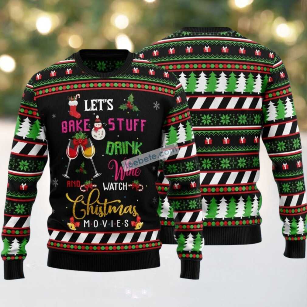 Imagine the sweet aroma of gingerbread mingling with the rich scent of your favorite holiday Merlot. For many, the festive season is a delightful dance between creating culinary masterpieces and unwinding with a glass of good wine. But what if your holiday attire could tell that delicious story? Our “Lets Bake Stuff Wine Xmas Ugly Christmas Sweater” is more than just a cozy layer; it’s a celebration of these cherished yuletide traditions. It’s perfect for anyone who finds joy in both the kitchen and the cellar, ready to bring smiles and spark conversations at any holiday gathering.