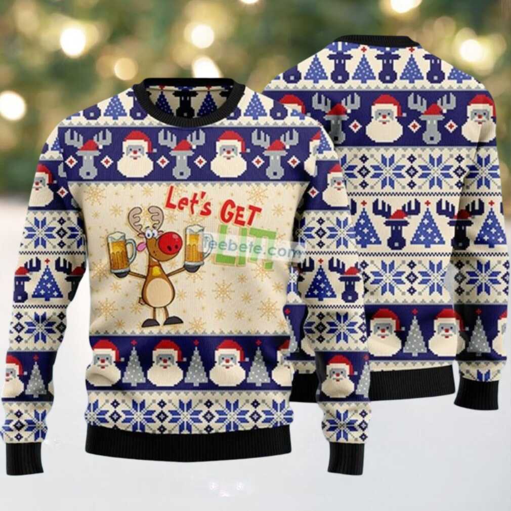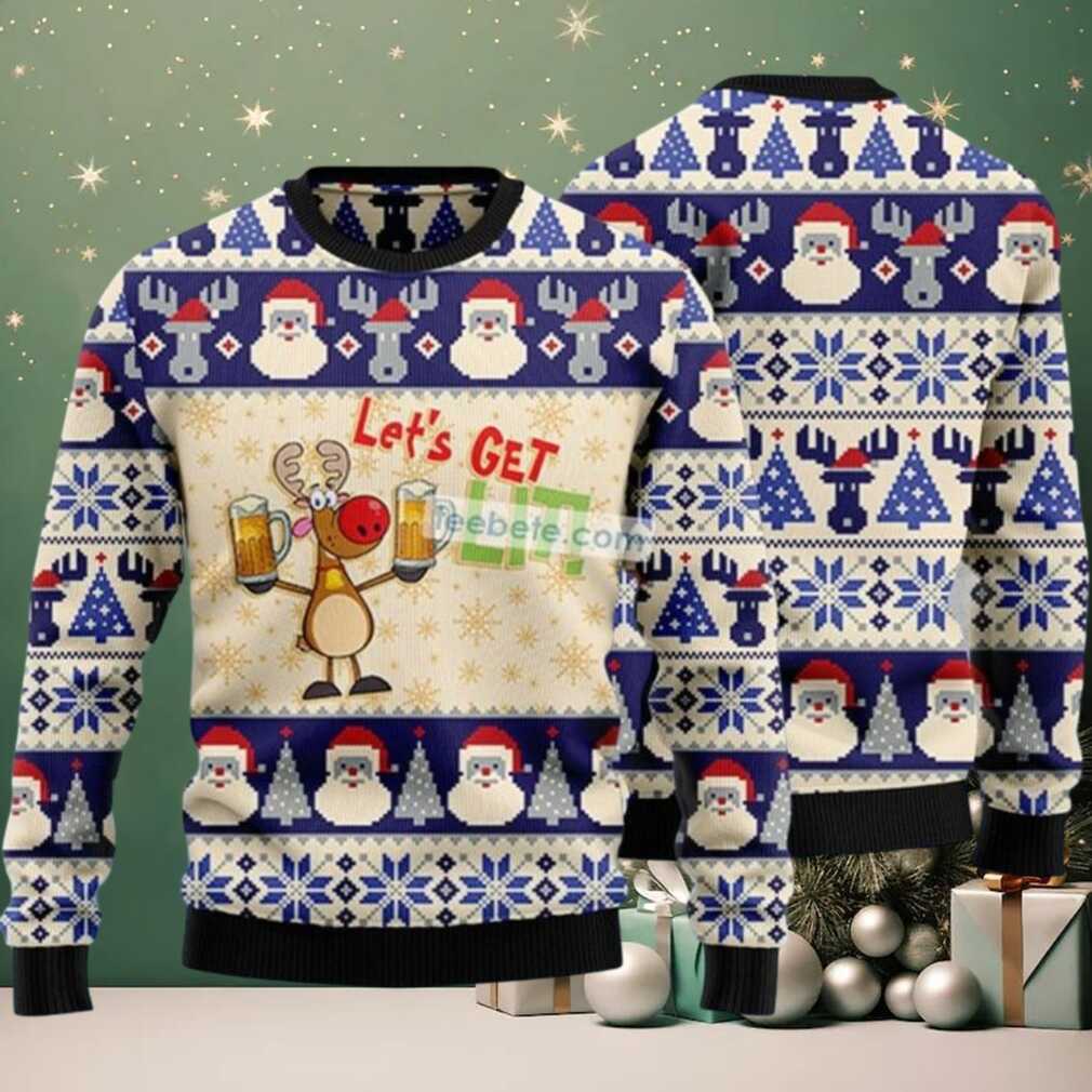 [Explore our collection of funny Christmas sweaters] [Discover more unique holiday gifts]Prepare gifts for a wonderful Christmas season: Don’t miss out on the chance to get lit this holiday! Grab your “Lets Get Lit Beer With Red Nose Reindeer Ugly Christmas Sweater Ugliest” today and celebrate in unforgettable style!