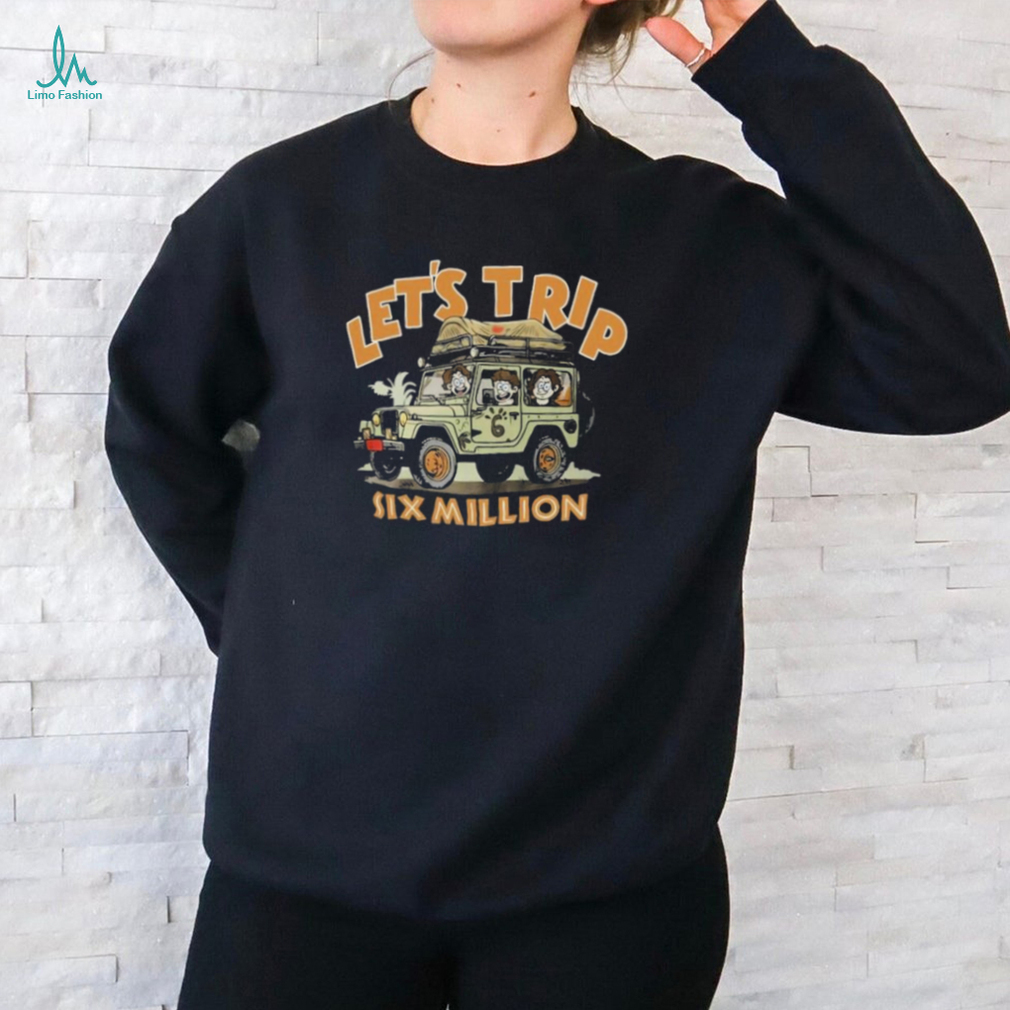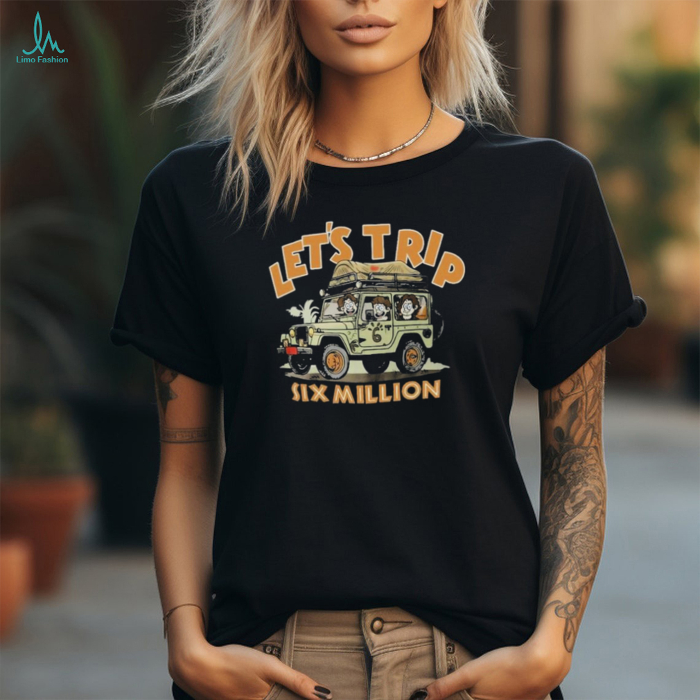 ()My funny story is when Santa put himself on the naughty list. I travelled the Let’s Trip Six Million Shirt home from work a few years ago, and I enjoyed all the Christmas lights and decorations every night. One house had a huge blow up Santa on top of the garage, with his arm raised, waving at you when the wind blew. One day I left work early, and it was still daylight. As I turned the corner on this windy day, I saw Santa was a bit deflated. He was slightly bent over and his arm had fallen down so that his hand was between his legs, and the wind was blowing a bit, and he was gently bobbing up and down, up and down, and he seemed to be enjoying himself entirely too much! I was crying with laughter, and I can never look at Santa again without flashbacks.