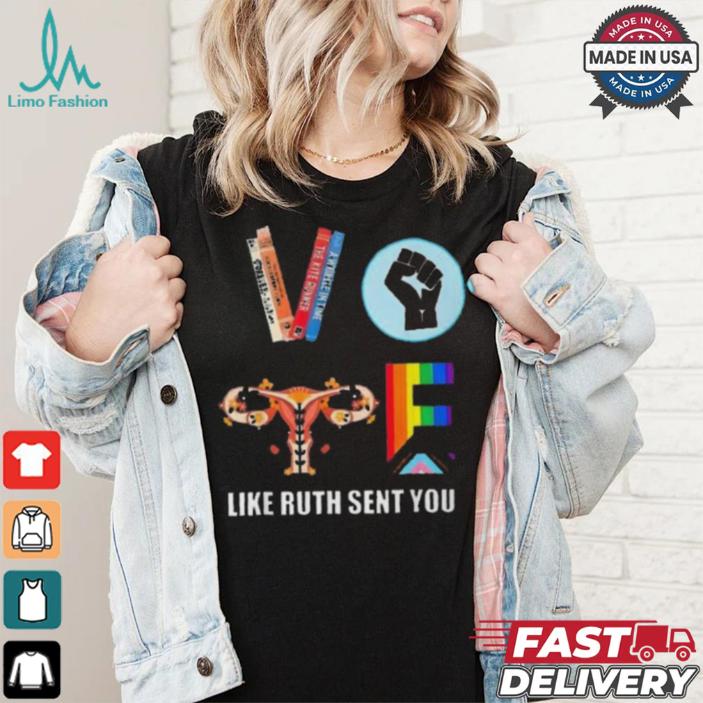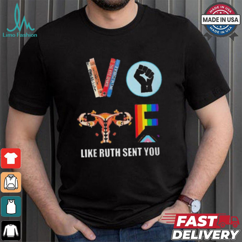 As someone who usually doesn’t get gifts and has a hard time getting and Limited Kamala Harris Vote Like Ruth Sent You T Shirt receiving them and finding what I want, it helps when there’s is secret santa stuff. So I helped out by participating and got picked to give a gift to this nice girl I knew. On the day of gift giving, as it was a surprise, I tapped her on the shoulder as she turned around, putting the gift in her hand in a smooth motion. It was one of the things on her wish list. Stunned in a good way, she said “thank you!” After saying my name. A minute later, a person I didn’t know as well, gave me a gift. I’ve never really celebrated it outside my family, and didn’t think I would get one. It was neat, and a very nice surprise, as we didn’t associate much with each other. I thanked her, and then again more than twenty minutes later as class ended. But the kicker: it was lunch time, and I was going to the bathroom, as per usual. Then this other person I know, a lot better, and am better pals with but don’t always get to hang out, but find much in common, called me over. I waited patiently to see what it was all about. We never really hung out at lunch, and last time she had asked me a question, so I had answered her. Our relationship wasn’t bad.