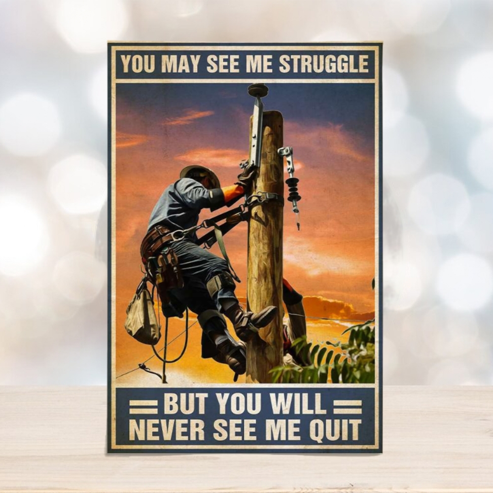 ()Lineman Poster You May See Me Struggle But You Never See Me Quit Lineman On Pole,