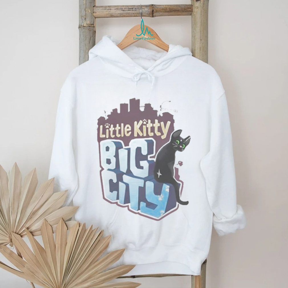 The Marvel Studios movies are known for Little kitty big city gildan shirt, light hearted tone, and easy going nature. Like the first film, this film had jokes in it. But I found myself not laughing. A few worked, like when Mantis got hit by falling debree in the final third act battle. But Rocket’s humor was not funny, Star-Lord and Gamora flirting did not amuse me. Sure- some things were funny- some Baby Groot moments were hilarious, that Mantis scene again, Drax and Mantis had a few funny scenes, and when Star-Lord and Rocket were arguing about tape- I guess that was funny, but other than that- most jokes just didn’t land. It was a shame, cause the first movie was so damn funny. But this movie was also so slow. There was barely any action. Majority of the film takes place on Ego’s Planet, and shows Drax falling in love with Mantis, Peter and Gamora getting closer together, and Peter getting to know his father. Whilst the relationships would otherwise be interesting to watch progress, they didn’t progress in the way I wanted. It was really Rocket, Baby Groot, Yondu and Nebula- they are the main characters in this film- Peter, Gamora, Ego, Drax and Mantis all are backseat players for this film. But the action we got also felt lackluster and had way too much CGI, almost like a DC movie. It was either too little action, or too much CGI in the action. The only good action pieces were between the sisters Gamora and Nebula, who had a great cat & mouse story in this film.