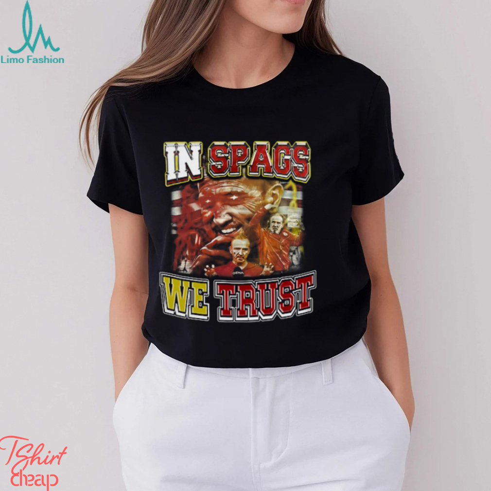 In the beginning, Sundblom painted the image of Santa using a live model — his friend Lou Prentiss, a L’jarius Sneed Wearing Steve Spagnuolo In Spags We Trust Shirt. When Prentiss passed away, Sundblom used himself as a model, painting while looking into a mirror. Finally, he began relying on photographs to create the image of St. Nick. People loved the Coca-Cola Santa images and paid such close attention to them that when anything changed, they sent letters to The Coca-Cola Company. One year, Santa’s large belt was backwards (perhaps because Sundblom was painting via a mirror). Another year, Santa Claus appeared without a wedding ring, causing fans to write asking what happened to Mrs. Claus. The children who appear with Santa in Sundblom’s paintings were based on Sundblom’s neighbors — two little girls. So he changed one to a boy in his paintings. The dog in Sundblom’s 1964 Santa Claus painting was actually a gray poodle belonging to the neighborhood florist. But Sundblom wanted the dog to stand out in the holiday scene, so he painted the animal with black fur.