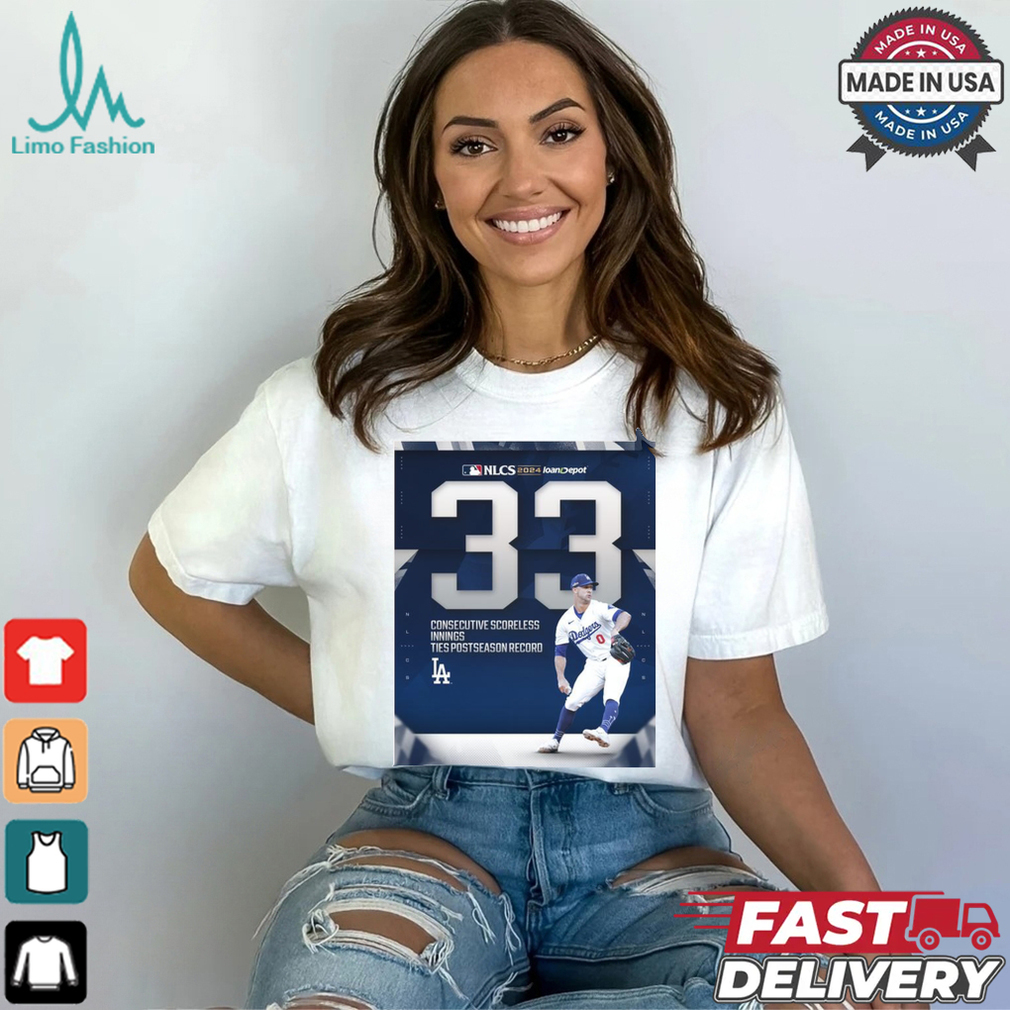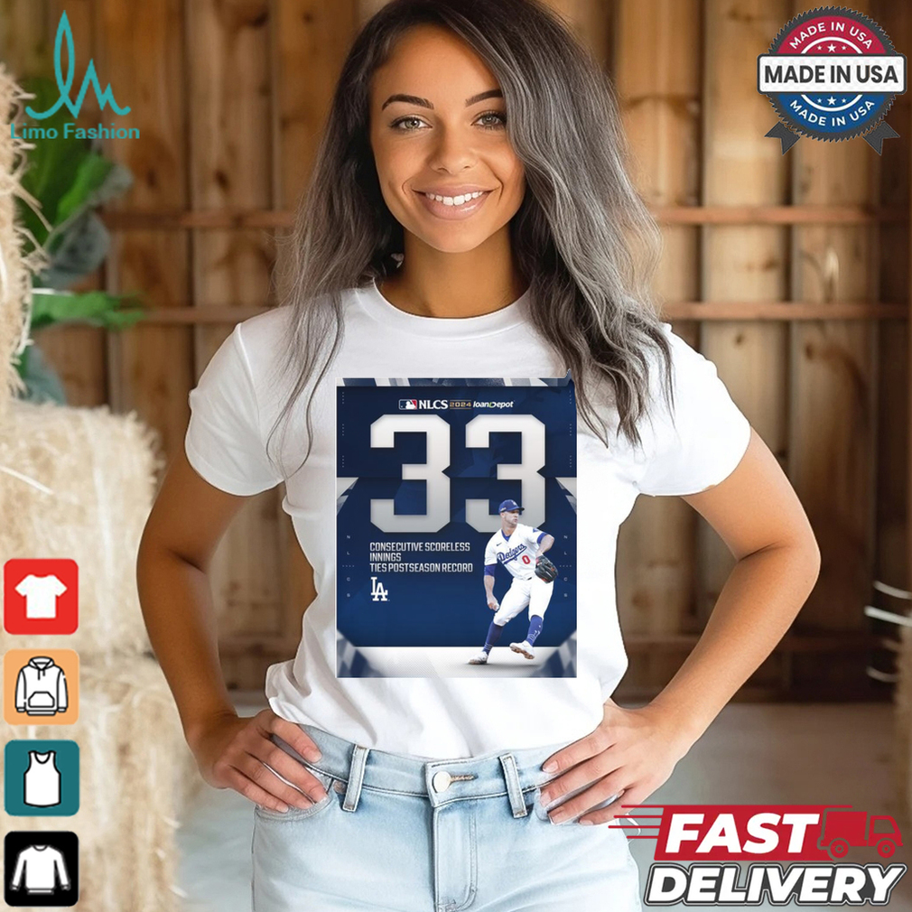 Los Angeles Dodge MLB 2024 NLCS 33 Consecutive Scorelelss Innings Ties Postseason Record Poster t shirt hoodie, tank top, sweater and long sleeve t-shirt