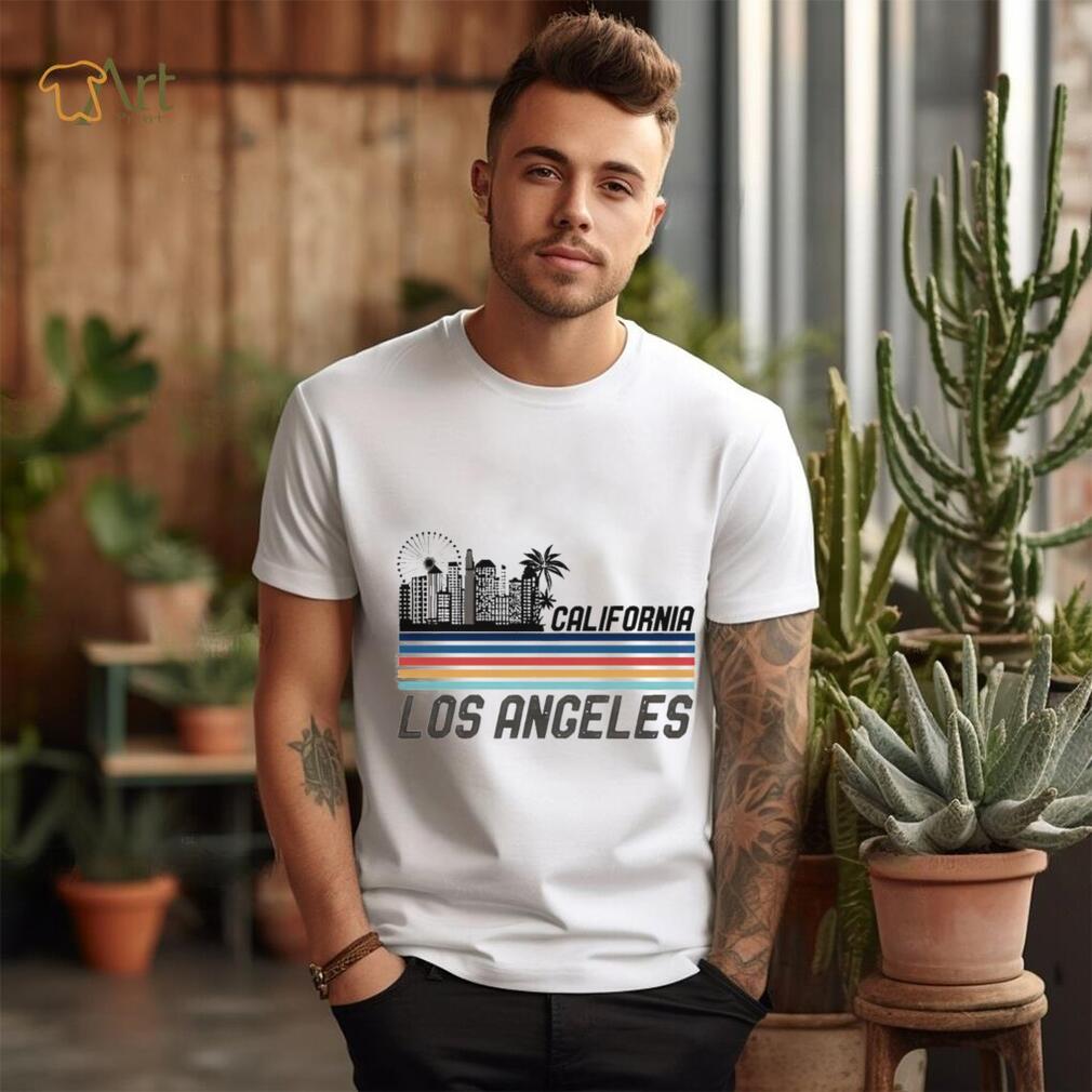 The Los angeles skyline California vintage shirt for excessive nail growth was primarily a statement of status as it was impossible to grow nails so long and undertake any manual labor. Unfortunately, such long nails meant the wearer of them could not do anything much at all. It would undoubtedly have been positively dangerous to have attempted any intimate body care. Therefore, anyone with such long nails would have relied upon servants to wash, dress and feed them, to prevent them doing themselves an injury- or breaking a nail. To counteract the inconvenience of a full set of long claws, it became fashionable for the Manchu women of the Qing dynasty to cultivate just one or two talons on the hands. These nails were shaped and styled so that they looked elegant rather than unwieldy and from the nineteenth century were often protected with nail guards made of gold or silver and studded with jewels.