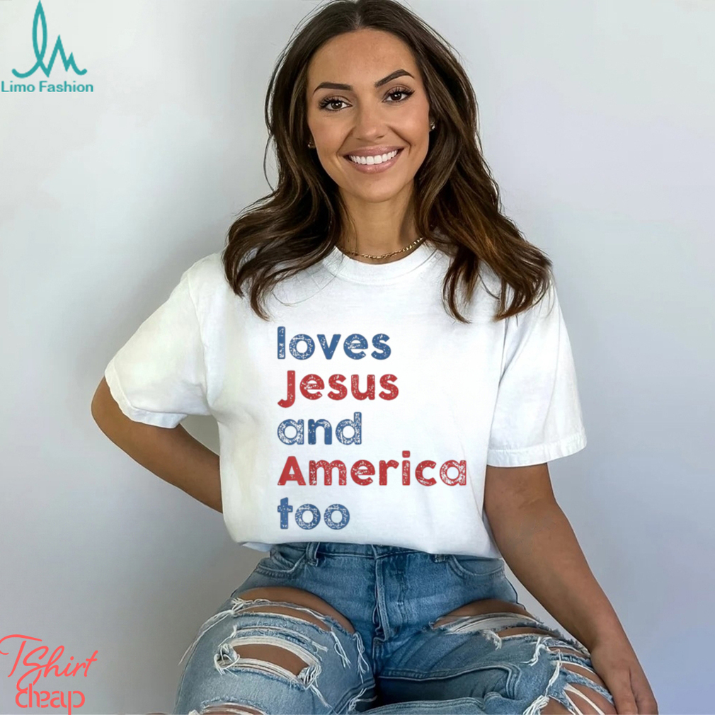 It is hard to answer this question because (a) there was no single winter festival, but different cultures celebrated the Loves Jesus And America Too 4th of July Proud T Shirt around the winter solstice in different ways, and (b) we have no means of telling “what was considered the true meaning” in the case of those festivals celebrated in illiterate societies, apart from guesswork and deduction. And where there are written records, as in China and ancient Rome, they tell us little about “true meanings”. From Chinese poetry and practice, we can infer that behind the festival was gratitude that the shorter nights that were coming heralded the return of warmth and life, and from Roman practice we can infer that people were happy that the sun was at last increasing in strength. Portraying this as a battle between light and darkness, though, is pure speculation. It is natural to suppose.