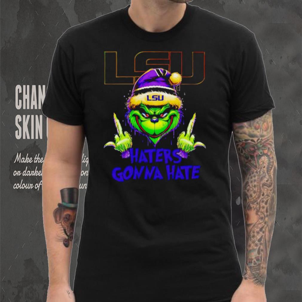 In my opinion, DIY Christmas cards are a LSU Tigers Grinch middle finger haters gonna hate shirt of interesting holiday crafts, as well as simple and festive gifts. It is also a very meaningful thing for family and friends to say “Merry Christmas” in this way. And Christmas decoration patterns such as Santa Claus, Christmas tree, reindeer, gingerbread man and penguin are still essential patterns in common gifts every year.