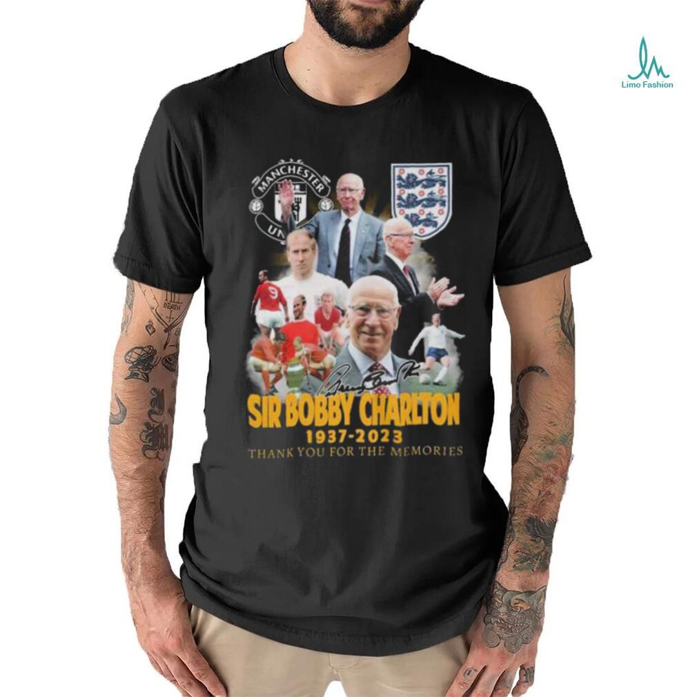()Manchester United Sir Bobby Charlton 1937 – 2023 Thank You For The Memories T Shirt. Categories of this T-shirt is teejeep, Manchester United Sir Bobby Charlton 1937 – 2023 Thank You For The Memories T Shirt from Dadyshirt ✓ Unique designs ✓ Large assortment ✓ Comfortable ✓ High-quality ✓ Easy to care for ✓ Available in a range of colours and styles for men, women ✓ Shop now ✓