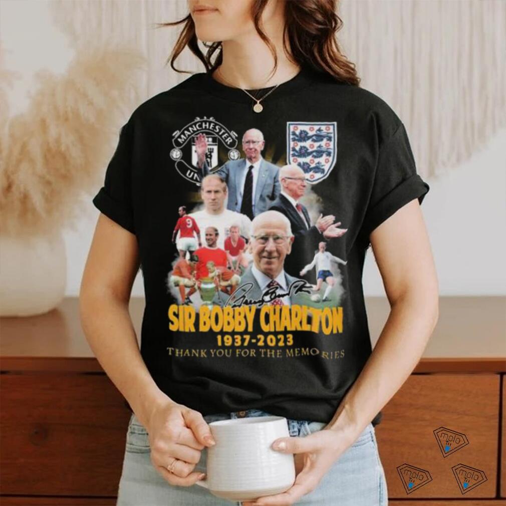 ()Manchester United Sir Bobby Charlton 1937 – 2023 Thank You For The Memories T Shirt, Hoodie, Sweater, Vneck, Unisex and T-shirt