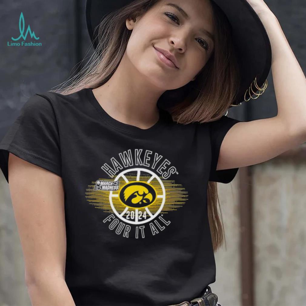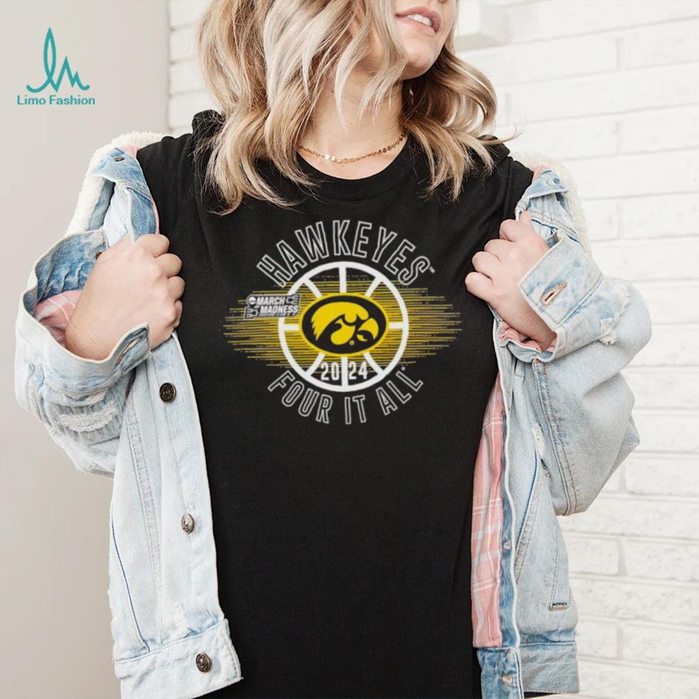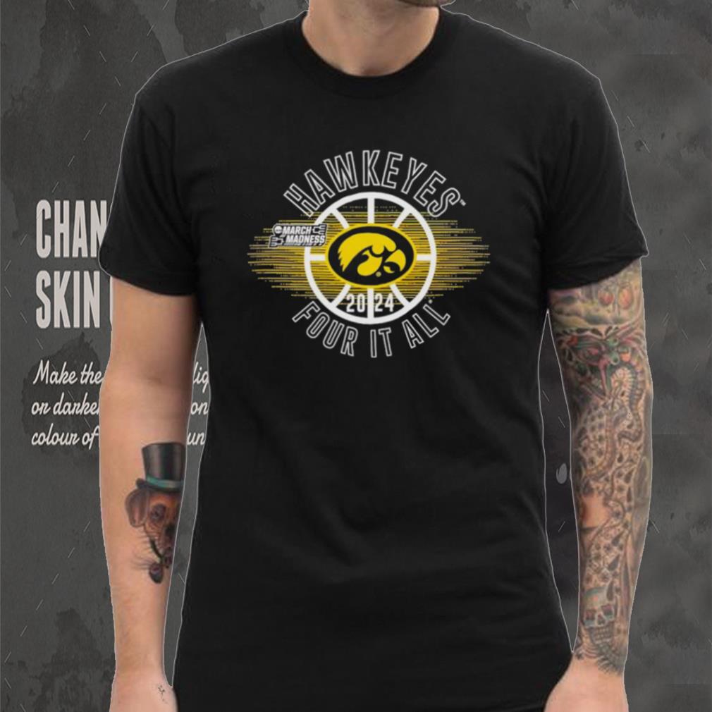 Now the site keeping her alive had developed an March Madness Hawkeyes 2024 four it all shirt. A sort of little balloon in the artery just waiting to burst. Hospital records show the doctors and nurses were aware of it. Though they had no answer when I asked why they did nothing about it. Imagine an artery and vein both bleeding at the same time. Niagra Falls held at bay by a flimsy pressure dressing applied before bed. I later described it as a “lake of blood”. And it happened at night. When we were asleep. It was my worst nightmare realized.