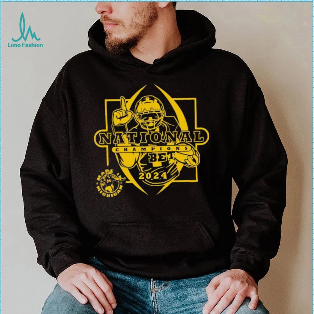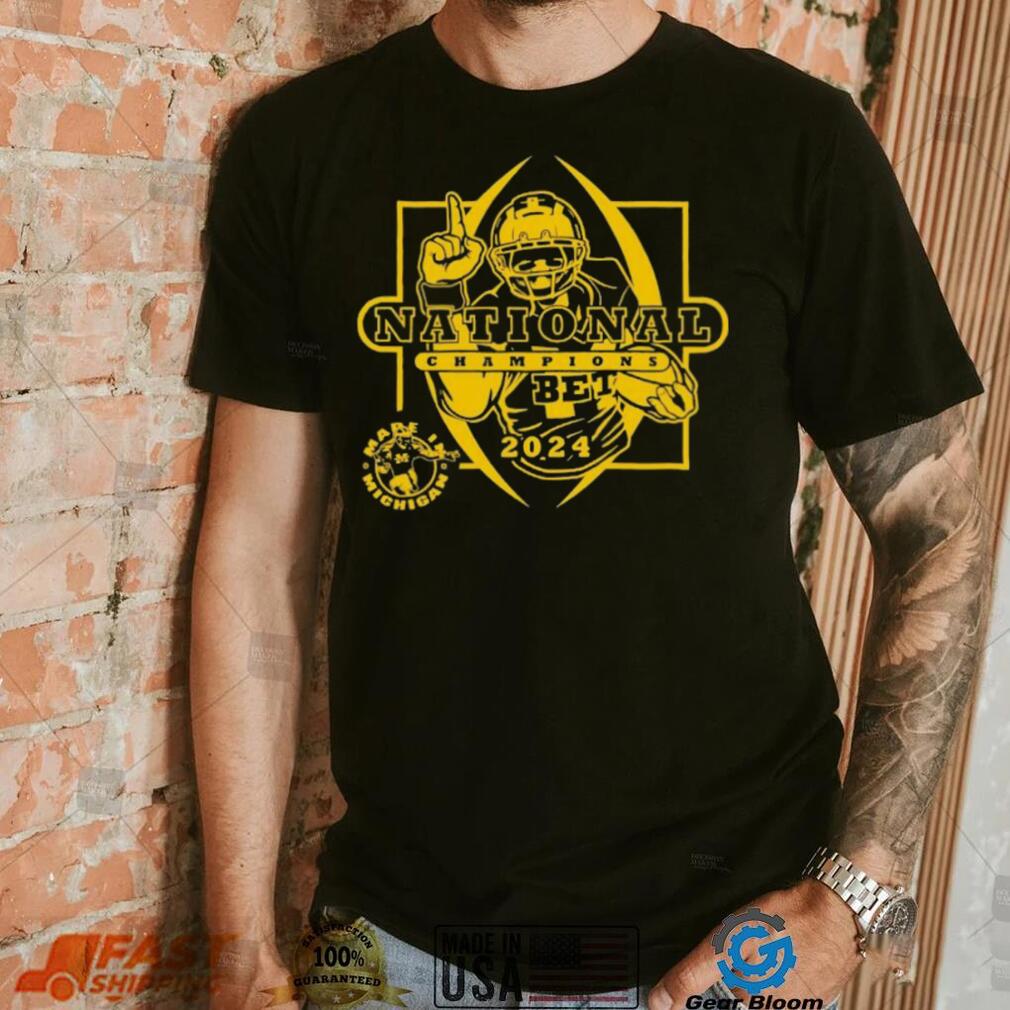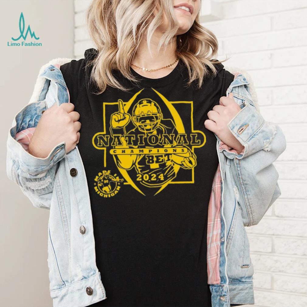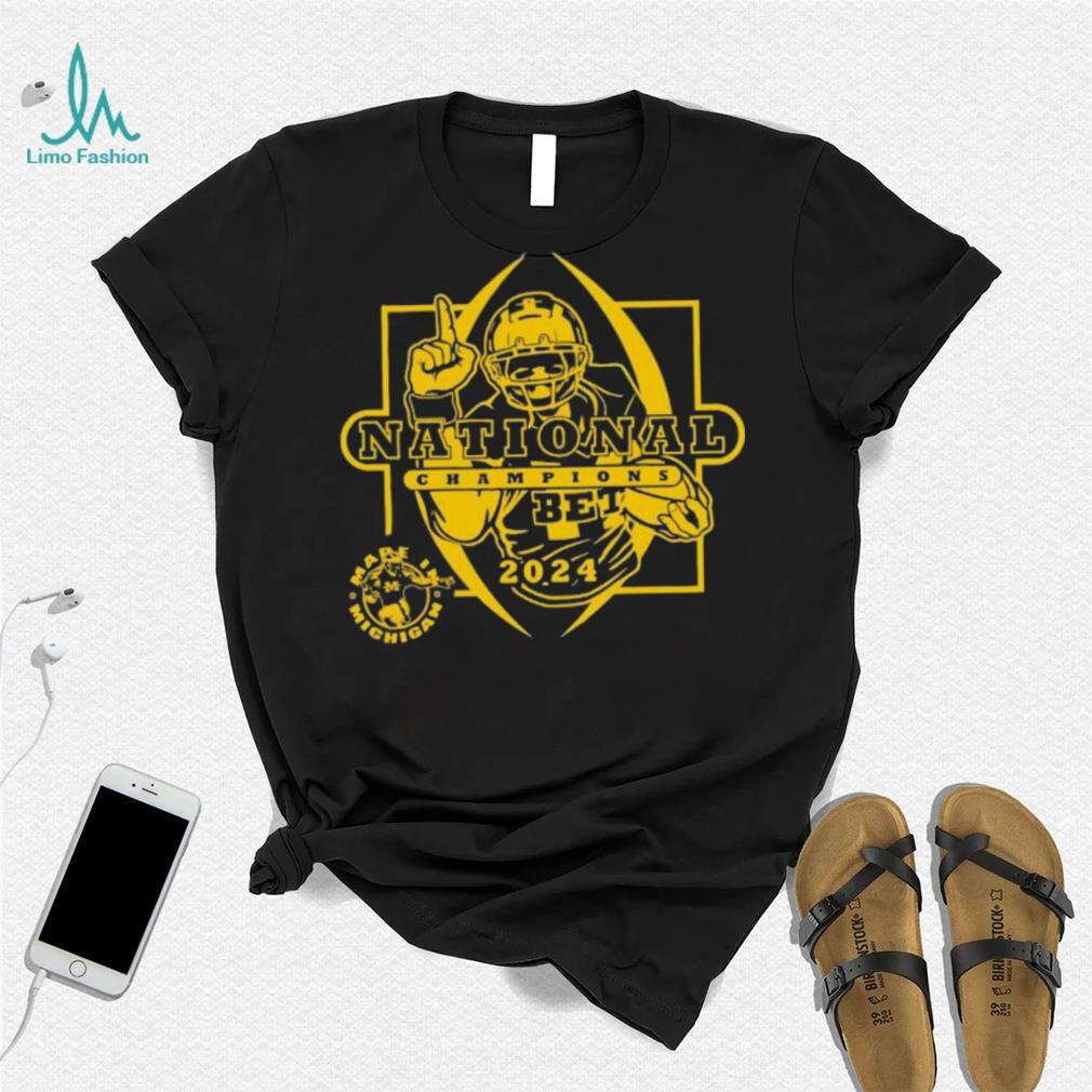 I sigh, and am just going to Mare Is Michigan Football National Champions Michigan Wolverines 2024 shirt . Two cages are by each other. I reach in between the cages to pet a handsome adult cat in one of the cages. In the other cage are four kittens, tumbling about playing so hard it was hard to see what each one looked like. As my arm went between the cages, two little paws shot out and grabbed my wrist in a death grip. The three other kittens moved away and the fourth kitten was holding my arm, calmly looking at me with huge green eyes. The shelter staff girl came up and asked if I needed help.