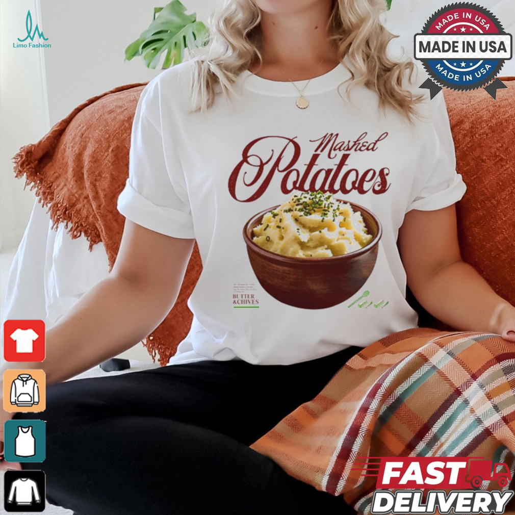 Focus on things that stretches your Mashed Potatoes Butter And Chives t shirt . This can be achieved through by doing things like going to music concerts, traveling wide, reading wide, learning new things (which gives you a sense of achievement). For the same reason in 3), you will likely get used to material well-being very quickly (like a new house or a new car), instead, experiencing new things will give you a long term satisfaction when you recall them. Therefore, money can be a very powerful tool to buy you high quality experience, if you know how to utilize it carefully.