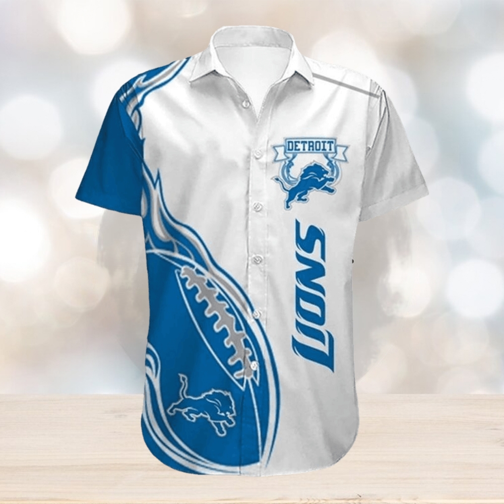 ()Men’s Detroit Lions Shirts Fireball Button Short Sleeve,